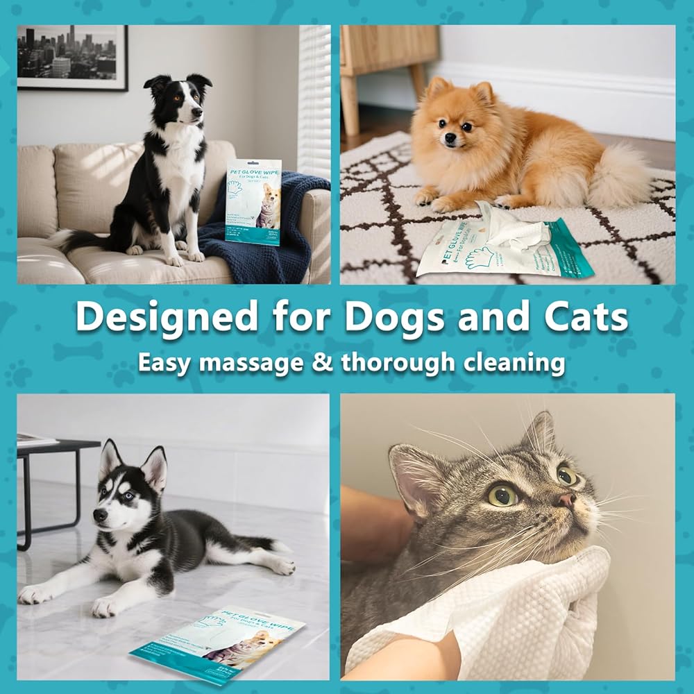 • للاستعمال مرة واحدة ومناسب للسفر: كل قفاز مرطب مسبقًا وجاهز للاستخدام في أي مكان. ما عليك سوى مسح حيوانك الأليف والتخلص منه - دون الحاجة إلى الشطف أو الغسيل. حل عملي لأصحاب الحيوانات الأليفة المشغولين الذين يقدرون النظافة والراحة