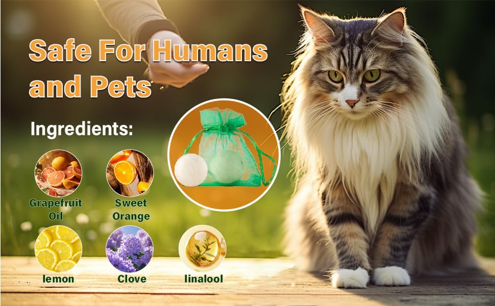 • 【كرات طبيعية طاردة】كراتنا مصنوعة من مكونات نباتية طبيعية، وهي صديقة للبيئة وآمنة للأطفال والقطط والكلاب والحيوانات الأليفة الأخرى.