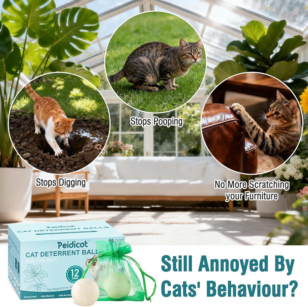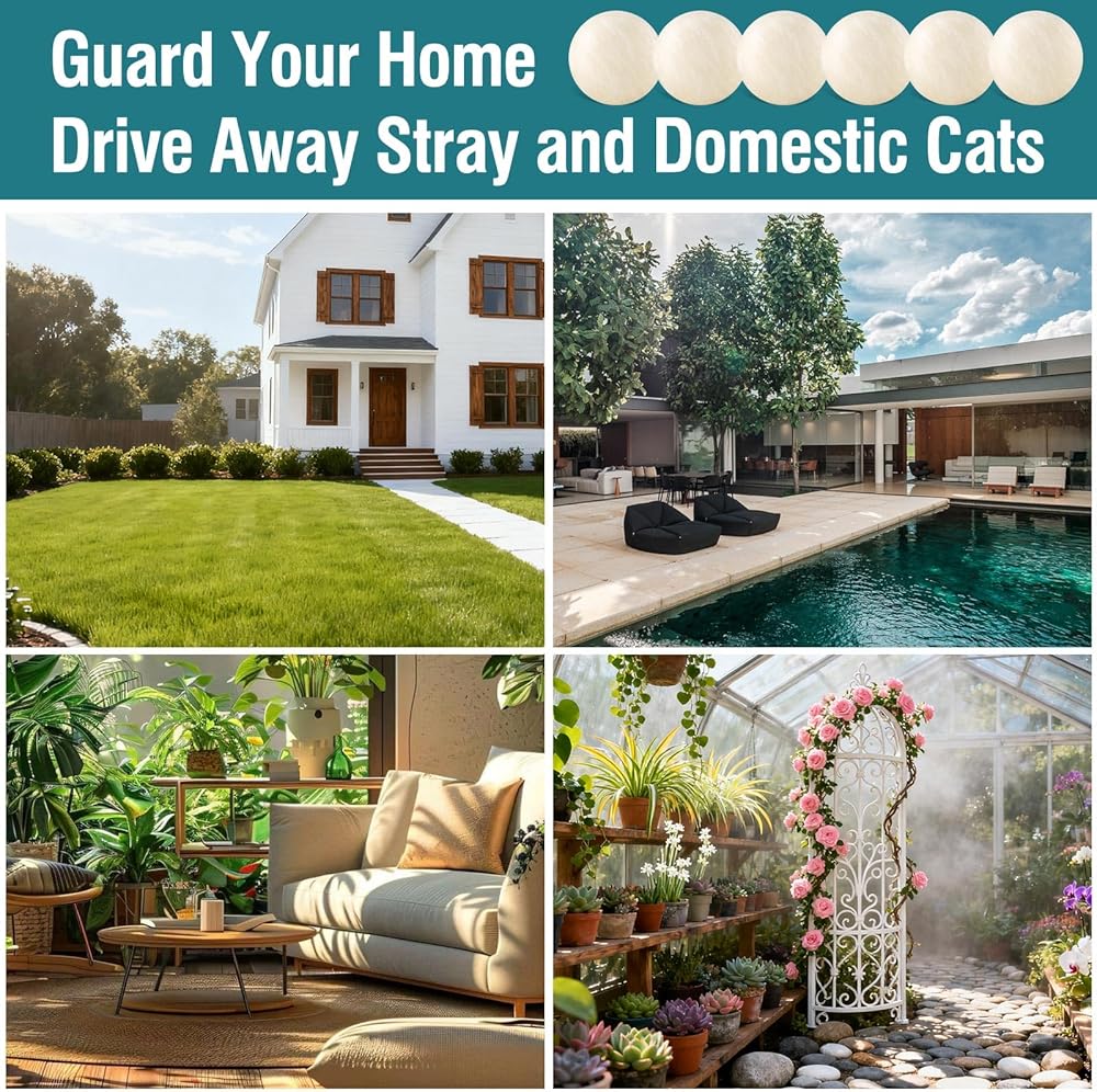 • 【مجموعة واسعة من التطبيقات】الكرات الطاردة مناسبة لأي مكان تحتاج إليه، مثل وضعها في الداخل لمنع القطط المشاغبة من خدش الأثاث ووضعها في الهواء الطلق لمنع القطط من تدمير الفناء والحديقة وأسرّة الزهور.