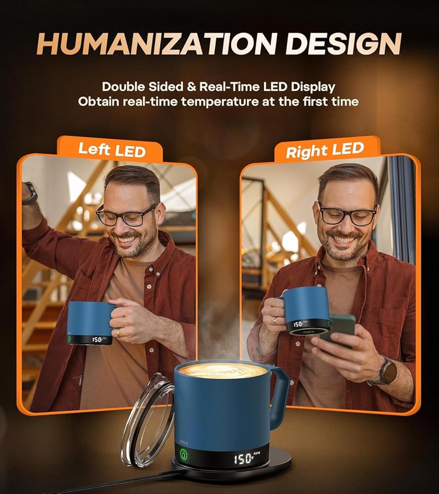 • شاشة LED مزدوجة الجوانب وفي الوقت الحقيقي: تعرض شاشة LED مزدوجة الجوانب درجة الحرارة في الوقت الحقيقي لكل من مستخدمي اليد اليسرى واليمنى. يمكنك الحصول على درجة الحرارة في الوقت الحقيقي عندما يكون مشروبك في درجة الحرارة المثالية، مما يجعل من السهل معرفة متى يكون مشروبك جاهزًا.