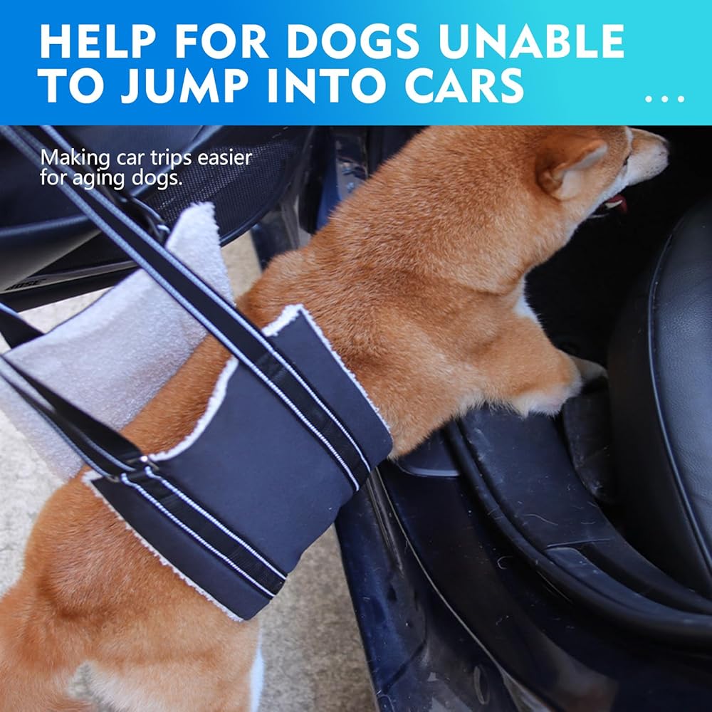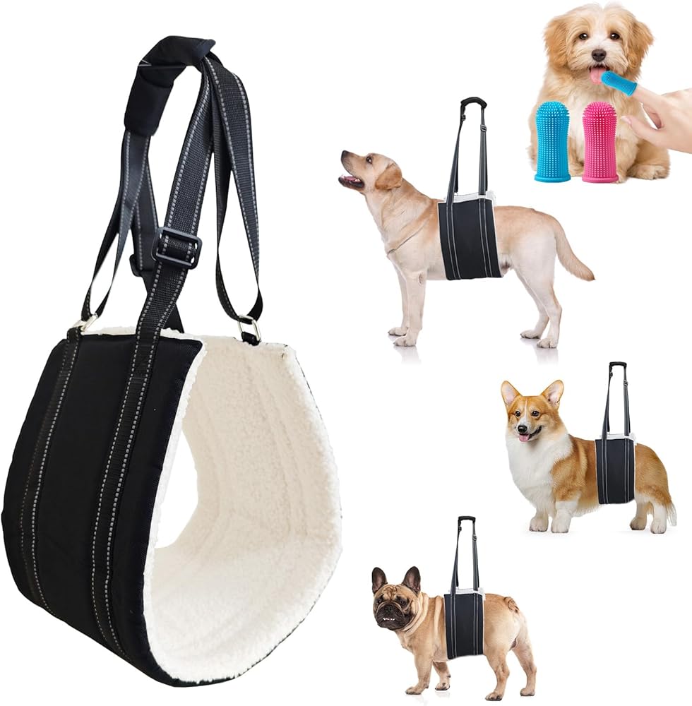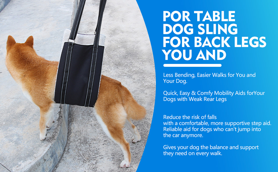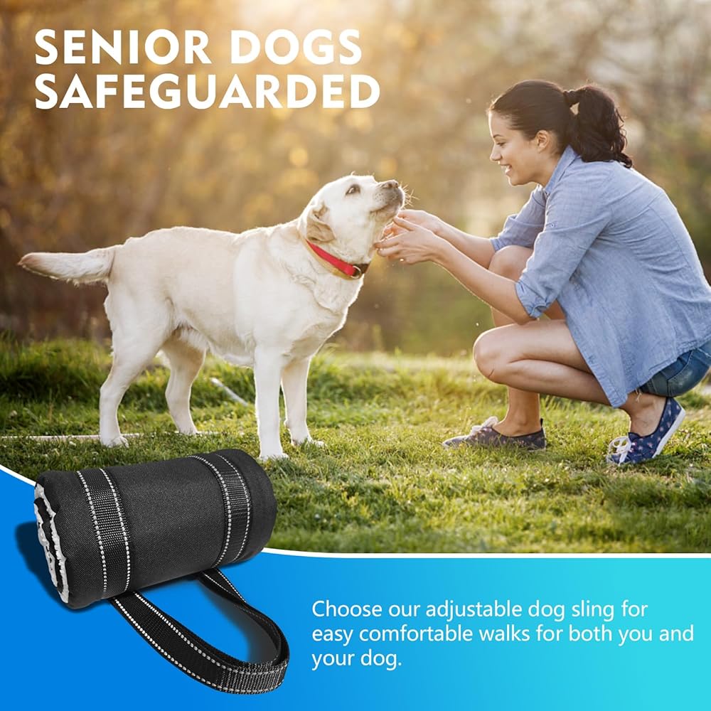 قم برفع ودعم مؤخرة كلبك بلطف لمساعدته على الوقوف أو المشي أو التنقل على السلالم أو الدخول والخروج من السيارات، ومساعدة كلبك المسن أو المعاق أو المصاب، الذي لا يستطيع التنقل على السلالم، ويواجه صعوبة في الصعود والنزول، ويحتاج إلى مساعدة في المشي ومعرض لخطر السقوط.