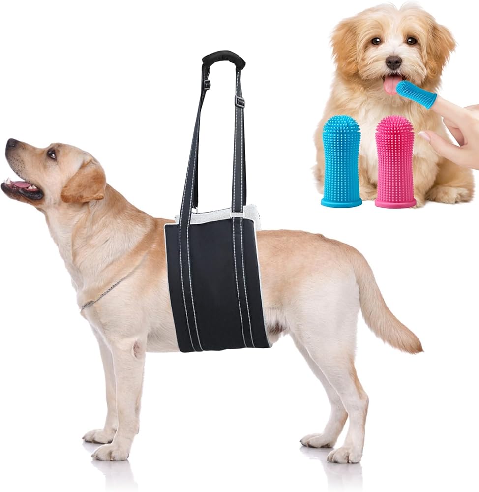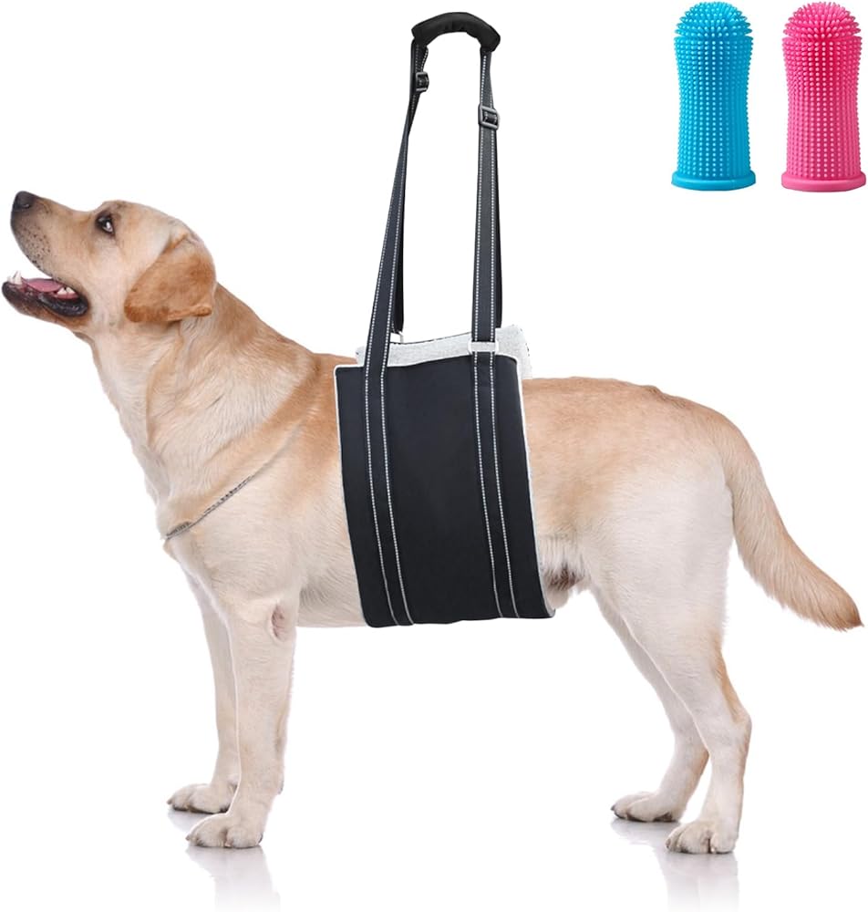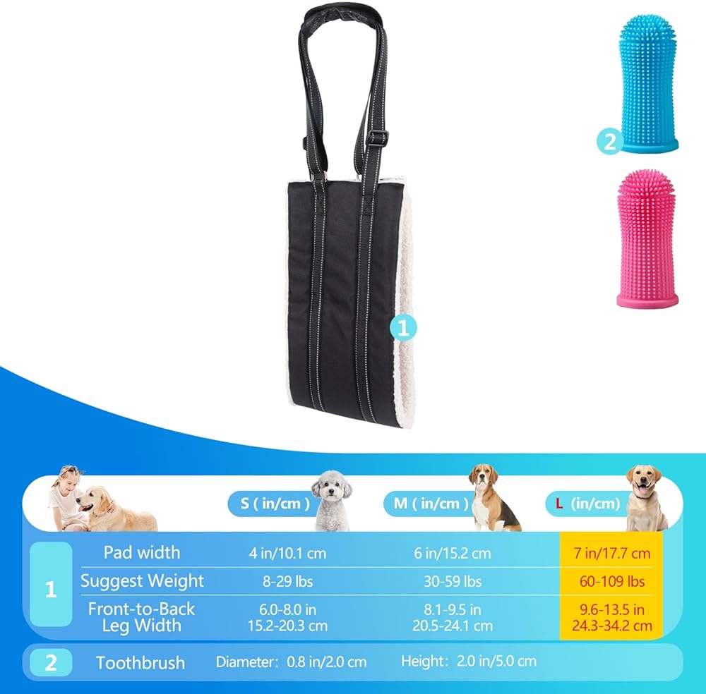 كلب كبير قابل للتعديل رفع تسخير حبال رفع الدعم للأرجل الخلفية الضعيفة دعم الساق الخلفية الناعمة للكلاب المصابة الكبيرة Sling-L + فرشاة أسنان الحيوانات الأليفة