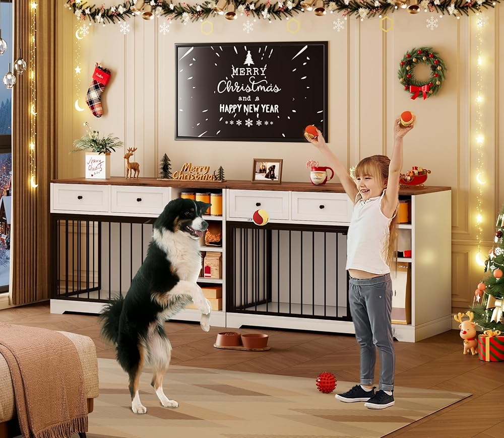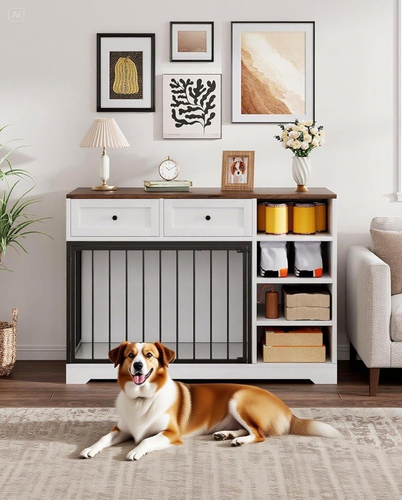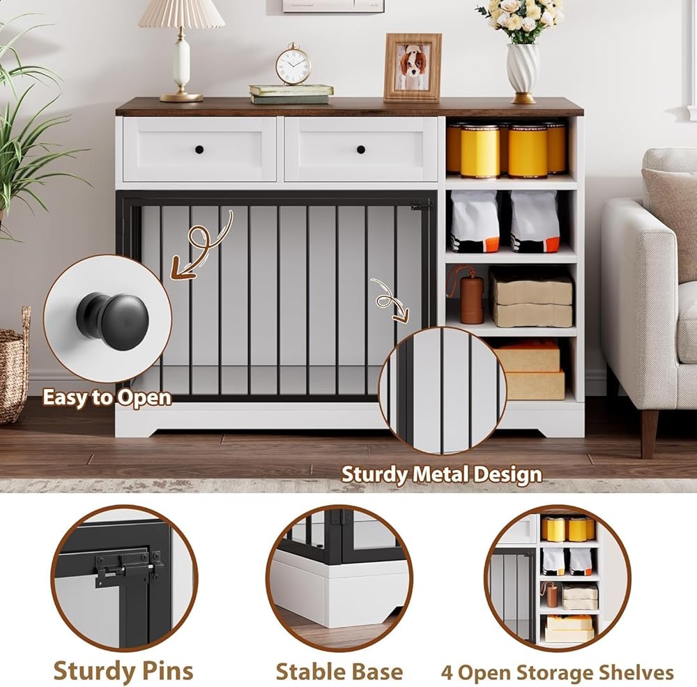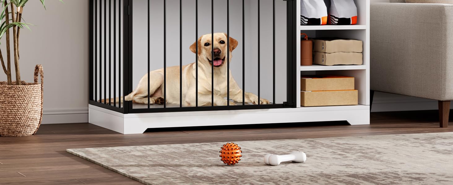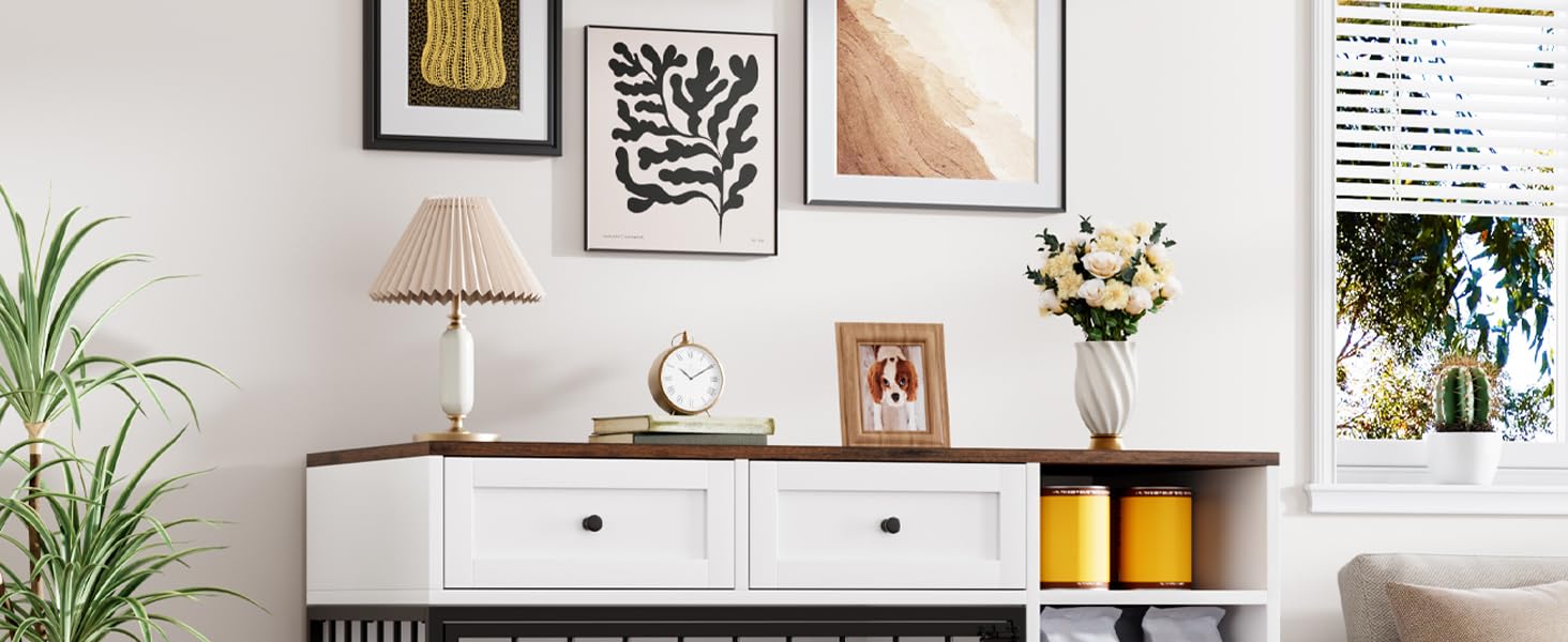 • مساحة تخزين وتوفير متعددة الوظائف: أكثر من مجرد قفص للكلاب، يمكن استخدام هذه القطعة كطاولة نهاية عملية مثالية لوضع المصابيح أو الكتب أو الديكور في غرفة المعيشة أو غرفة النوم أو المدخل. كما أنها تتميز بأدراج ورفوف تخزين كبيرة ومريحة، مثالية لتنظيم طعام الكلاب والمكافآت والمقاود والألعاب وغيرها من مستلزمات الحيوانات الأليفة.
