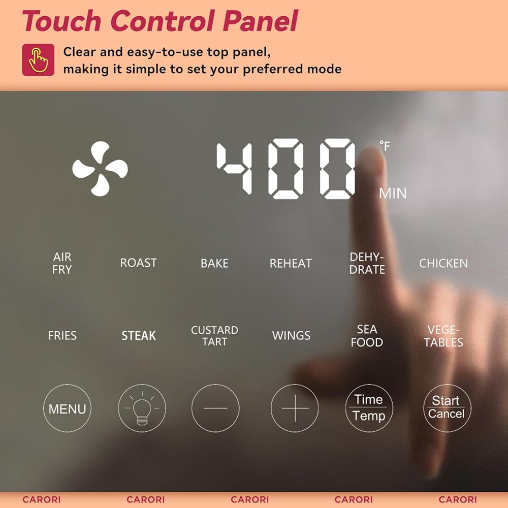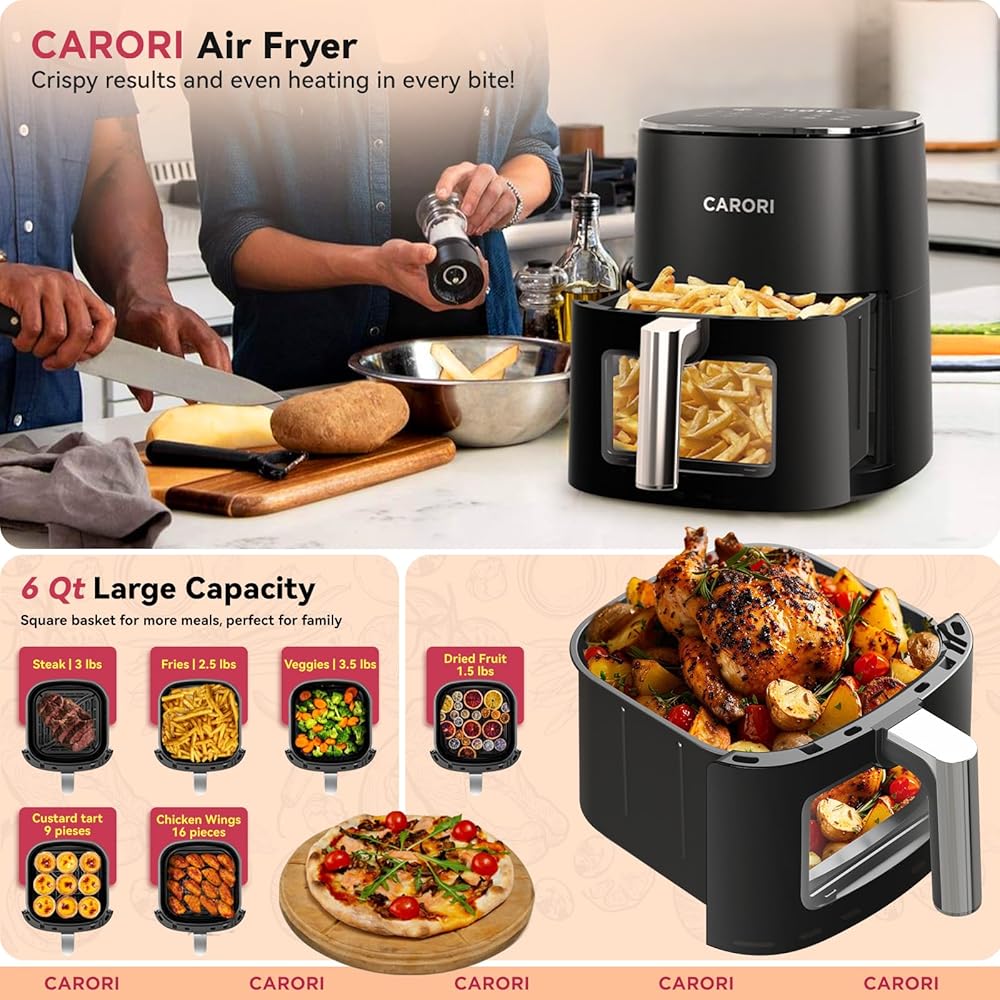 CARORI 6QT Air Fryer with Viewing Window, 12 Cooking Presets, 1700W Fast & Even Cooking, Max 400℉ Crisping, Bake, Roast, Reheat & Dehydrate, Large Nonstick Basket, Dishwasher Safe