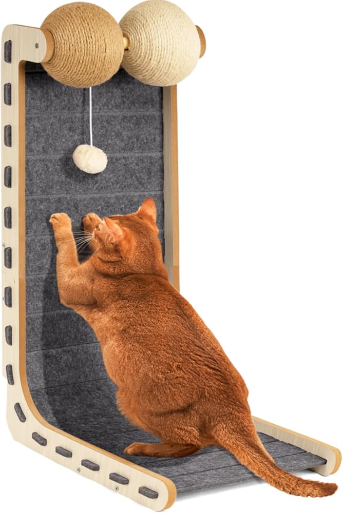 وسادة خدش للقطط من اللباد للقطط مع كرات السيزال، لوح خدش للقطط، لوح خدش كبير للقطط للبالغين في الأماكن المغلقة، حامي الأثاث للخدش، لعبة على شكل L، 28.4 بوصة، رمادي