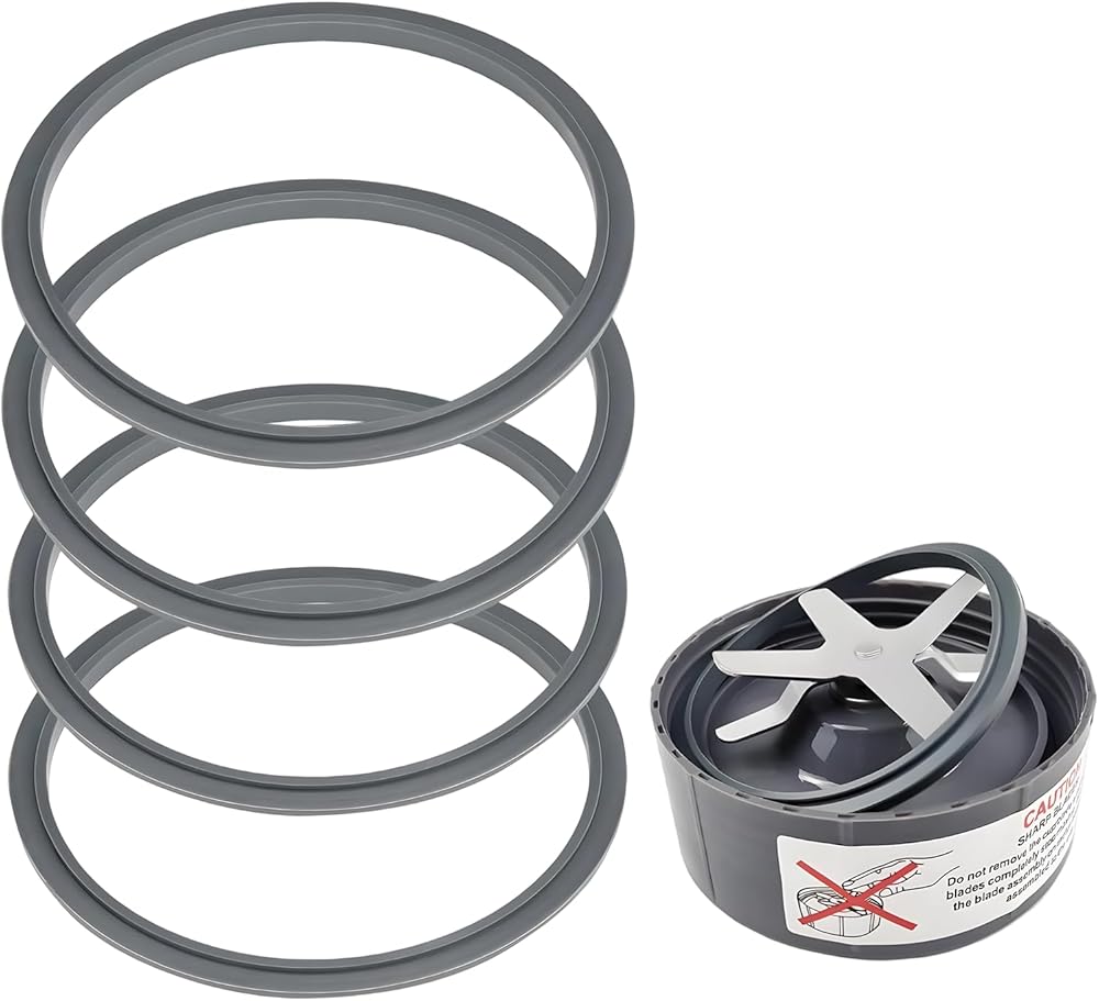 Keep your blender performing at its best with this 4-pack of replacement silicone gaskets. Designed for compatibility with NutriBullet 600W, 900W, select Pro series models, and some Rx models, these gaskets ensure a secure and leak-free seal every time. Made from silicone, they are non-toxic, durable, and dishwasher-safe for effortless cleaning. Please note: These gaskets are not made by NutriBullet and are not compatible with Magic Bullet, NutriBullet Balance, Baby Bullet, Nutri Ninja, or NutriBullet Blender Combo. To avoid inconvenience, confirm dimensions and your blender model before purchasing. Perfectly crafted to match the functionality of original parts, these gaskets are an ideal replacement for worn-out seals, ensuring your blender operates efficiently and effectively. With four gaskets included, you'll always have a spare on hand for uninterrupted blending. Elevate your blending experience with this reliable and high-quality gasket replacement set!