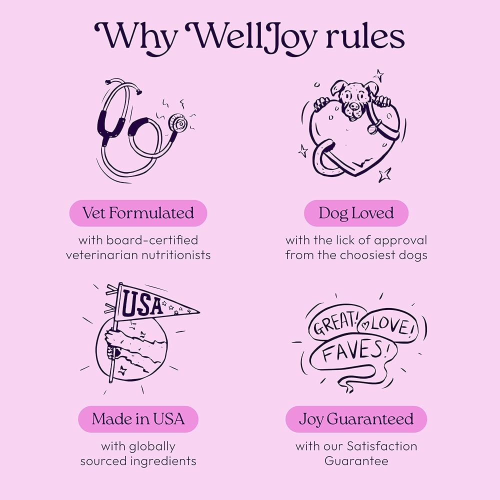Vet-Formulated: At WellJoy, we're wholeheartedly pet-first; what they need is what we focus on. It's why we develop our formulas in collaboration with board-certified veterinarian nutritionists to ensure that our treats and supplements meet every pet's needs, and every Pet Loyalist's high standards.