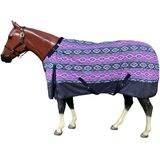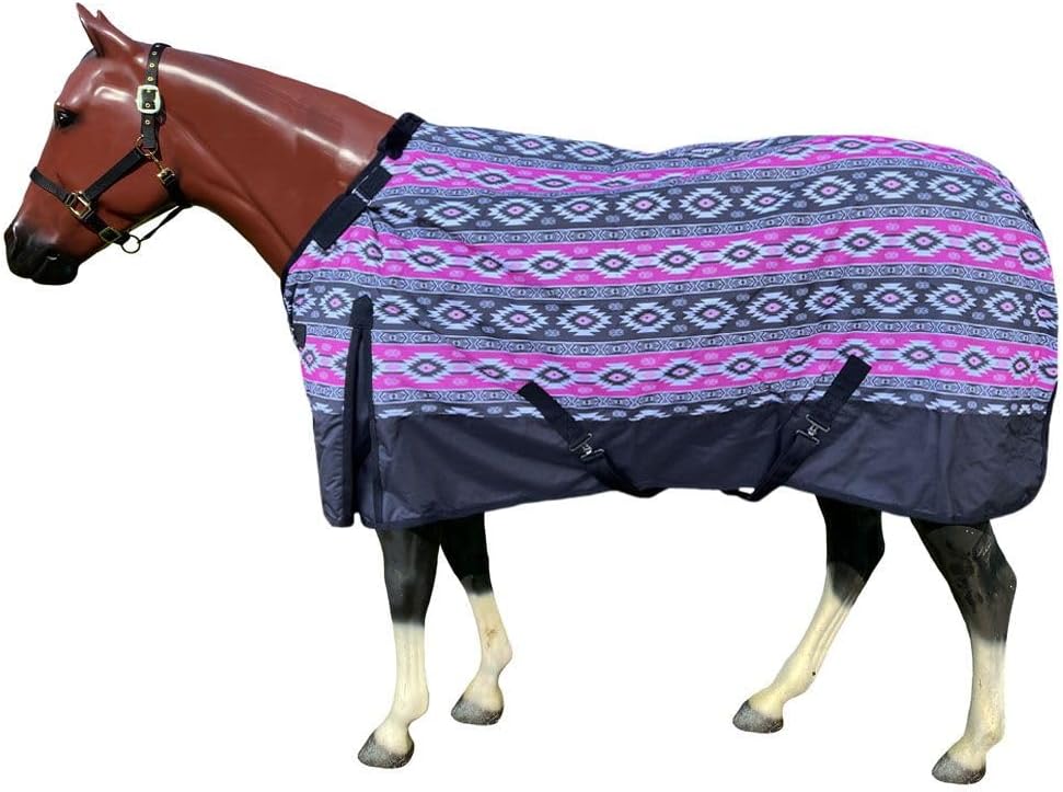 This trendy, southwest navajo 1200 denier turnout is just what you need to protect your horse from those cold winter months. It features waterproof and breathable 1200 denier ripstop outer shell, 210 denier nylon lining, 200 grams of polyfill insulation for warmth, and has wither fleece, adjustable neck, shoulder gussets for freedom of movement, low cross surcingles, double buckle front with quick clips for easier blanketing, tail flap, and adjustable leg straps that help keep it down and in place.