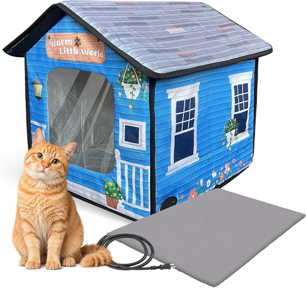 بيت القطط المُدفأ خارجيًا/داخليًا: مقاوم للخدش، ومقاوم للرياح والثلوج. يمكنك وضعها في أي مكان تريد. امنح قطتك منزلًا مريحًا ودافئًا.