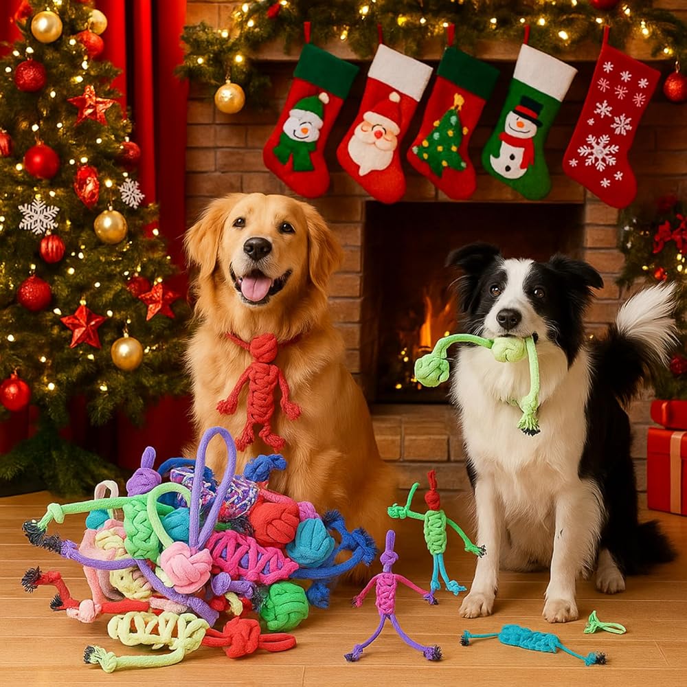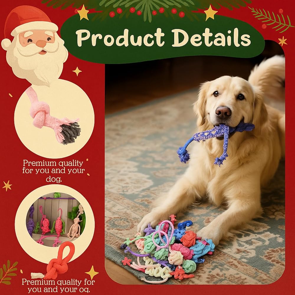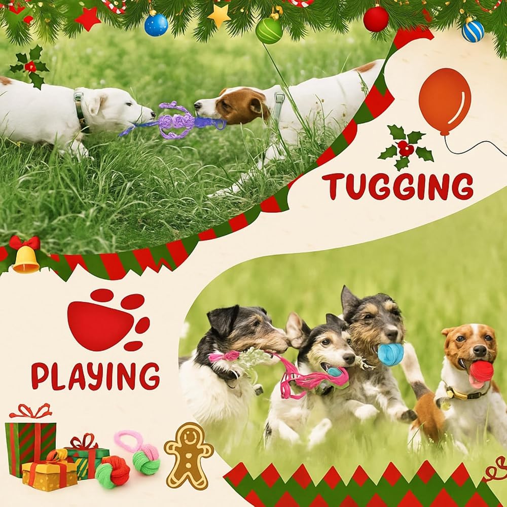 • Vibrant and Engaging Colors: the multicolor Christmas design of these interactive colorful tug rope sets adds a joyful touch to playtime; The bright and vibrant colors are visually appealing and attract your dog's attention, making them ideal for both indoor and outdoor play, ensuring your pet enjoys a lively and stimulating experience