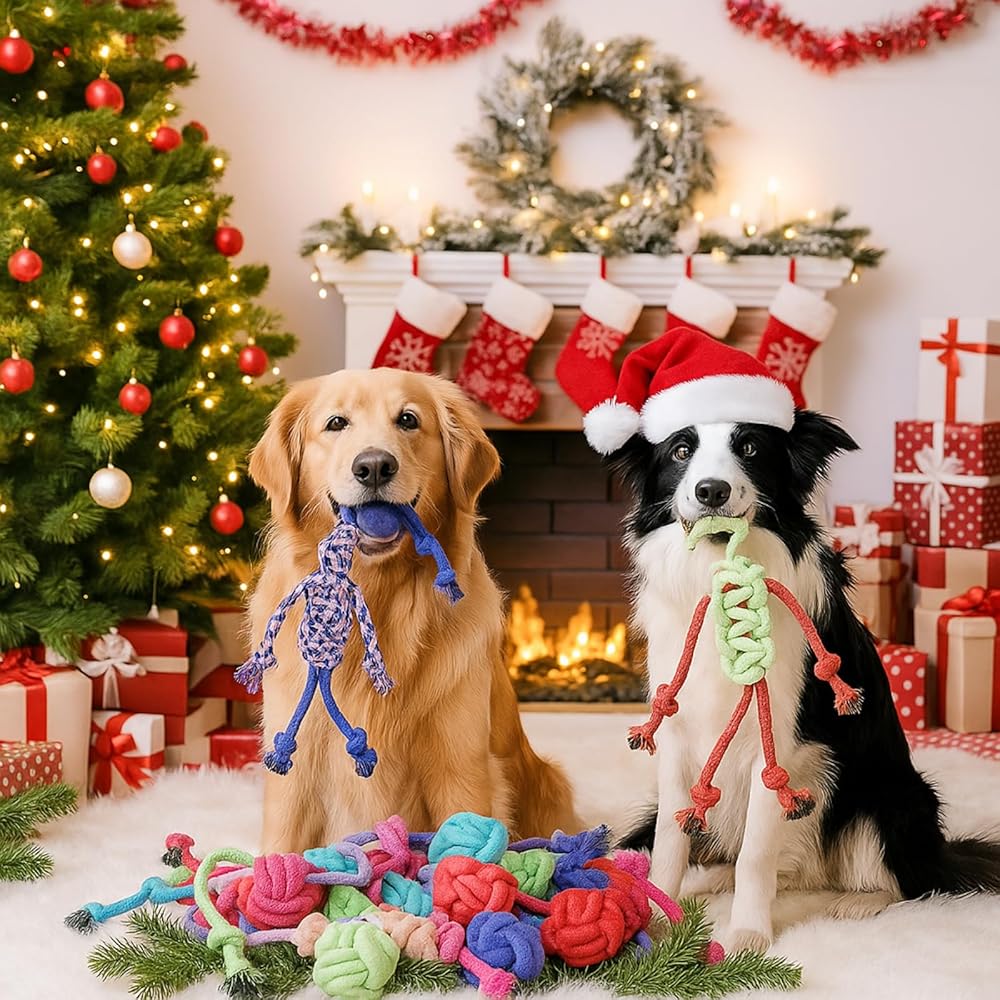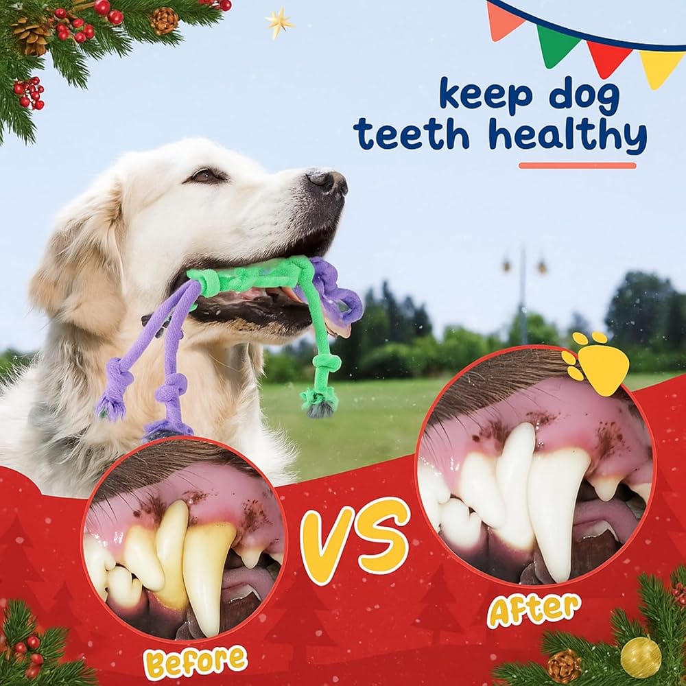 • Supports Dental Health: these dogs Christmas chew toys are designed not just for fun but also for promoting your dog's dental health; The multi layered knots and soft materials help clean teeth and massage gums while your pet chews; And It is an ideal choice for dog lover