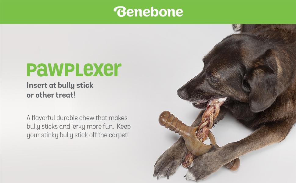 • MAKES A BULLY STICK MORE FUN – The Pawplexer is a flavorful durable chew that makes bully sticks and other treats more fun. It props the stick at a nice angle for a good chew session, and keeps your stinky bully stick off the carpet..
