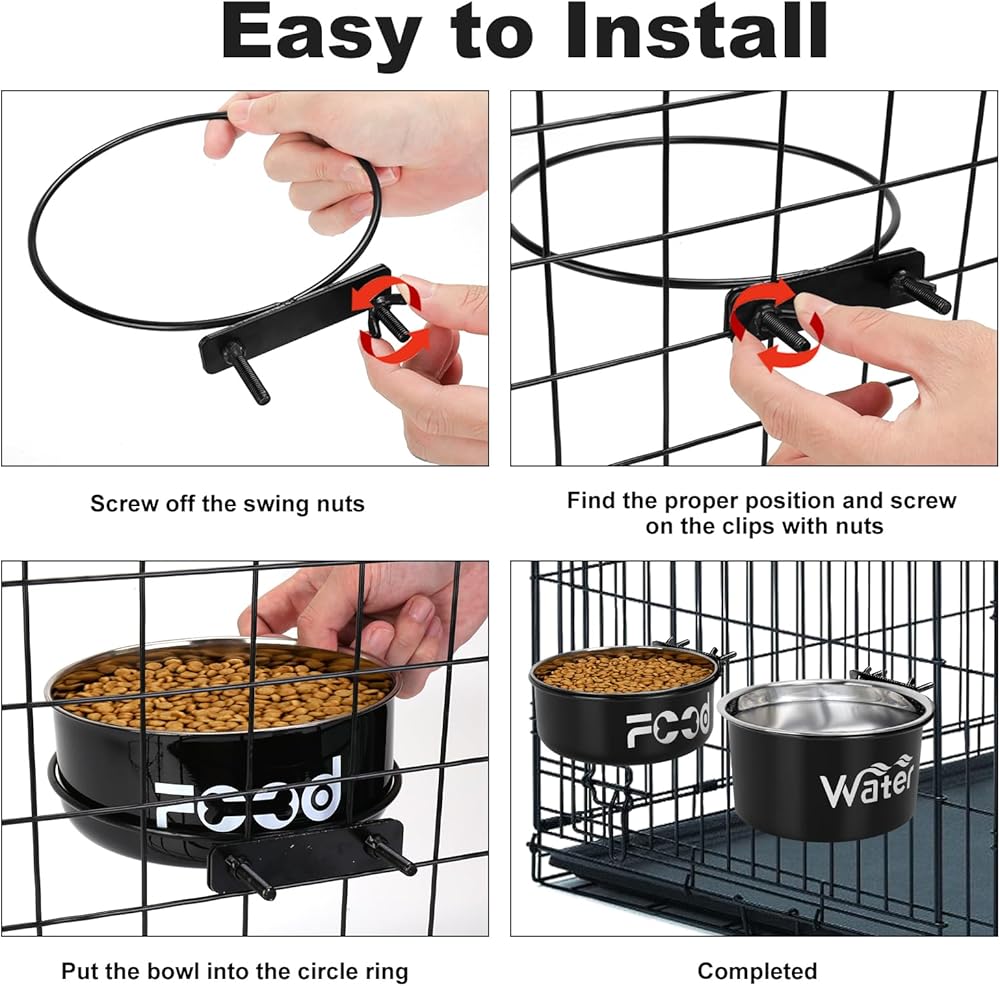 • 【سهلة التركيب】يمكن تركيب وعاء بيت الكلب بسهولة دون أي أدوات. ما عليك سوى العثور على الموضع المناسب وربط مقطعين بالصواميل. طول المشبك 8.5 سم، مناسب لتركيب القفص على مسافة 8 سم. سواء كانت قضبان القفص أفقية أو عمودية، سميكة أو رفيعة، يمكن تركيب وإزالة أوعية الكلاب الخاصة بالقفص بسهولة.