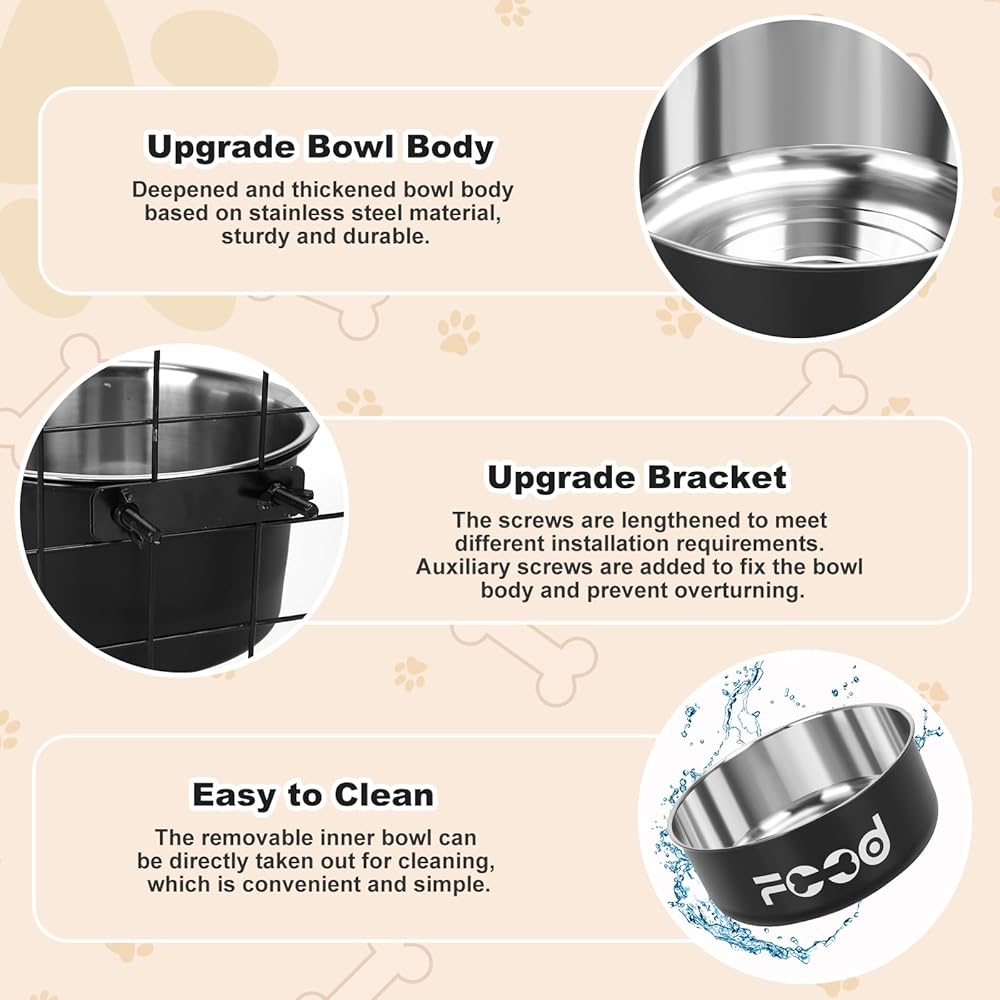 • 【سهلة التنظيف وآمنة للاستخدام في غسالة الأطباق】لا تحتوي أوعية قفص الكلاب على انسكابات ويمكن إخراجها مباشرة للتنظيف. التصميم الداخلي الناعم يجعل تنظيف وعاء الحيوانات الأليفة أسهل بكثير. سواء كنت تغسلها يدويًا أو في غسالة الأطباق، فمن السهل الحفاظ على أوعية القفص الخاصة بنا.
