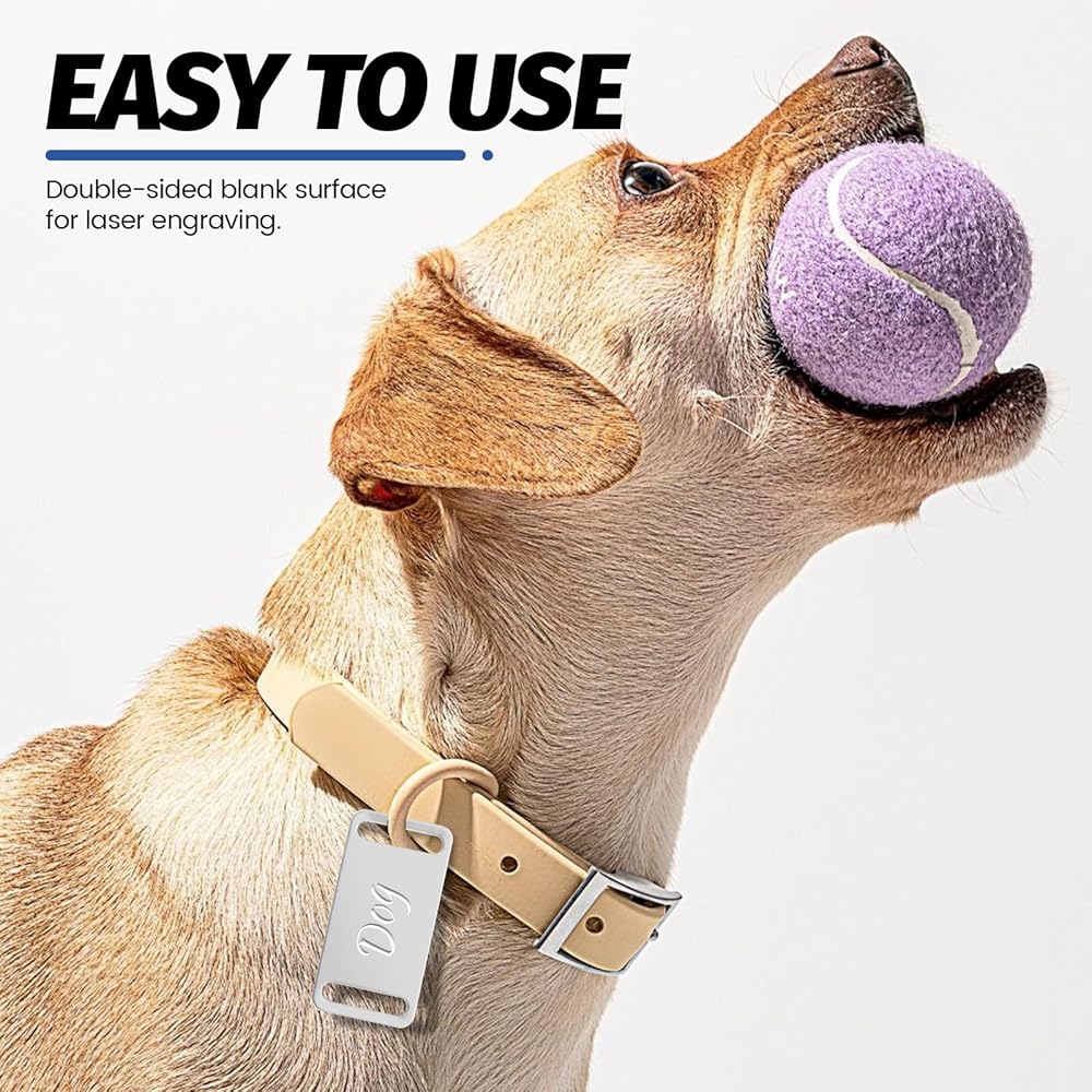 Easy to Use: Double-sided blank surface for laser engraving. Effortlessly attaches dog collar tag to dog/cat collars, bags, or luggage