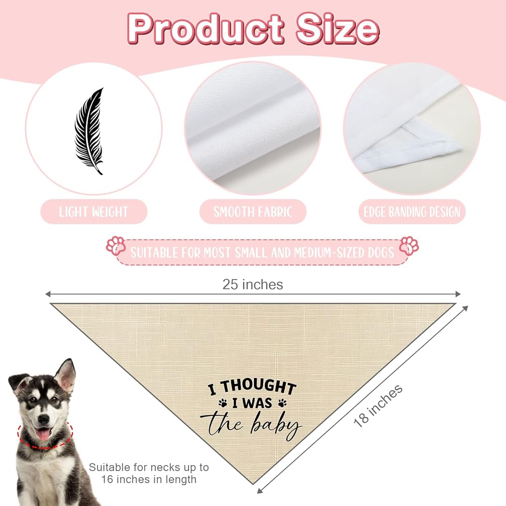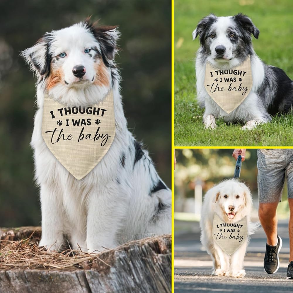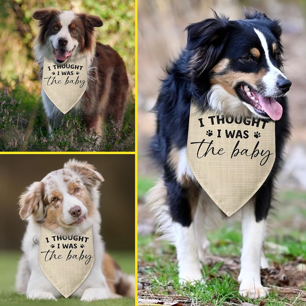 1.Baby Announcement Sign: This pet scarf is not only a practical pet accessory, but also symbolizes your love and care for your pet. The dog scarf features a classic triangle design with a stylish print and the text “I thought I was the baby” to make your dog the center of attention on any occasion. Whether it's a daily walk or a holiday party, this scarf will add a unique charm to your pet.