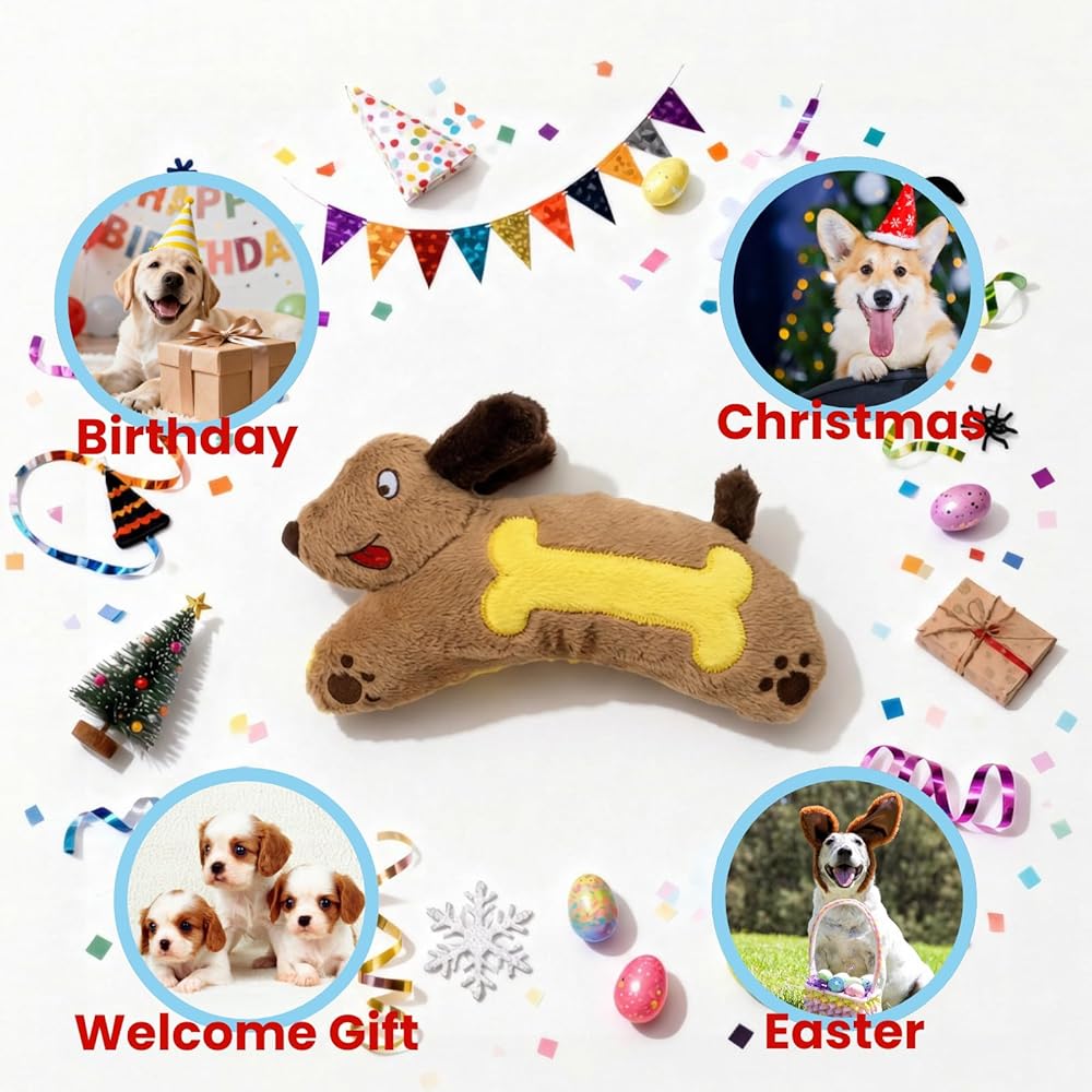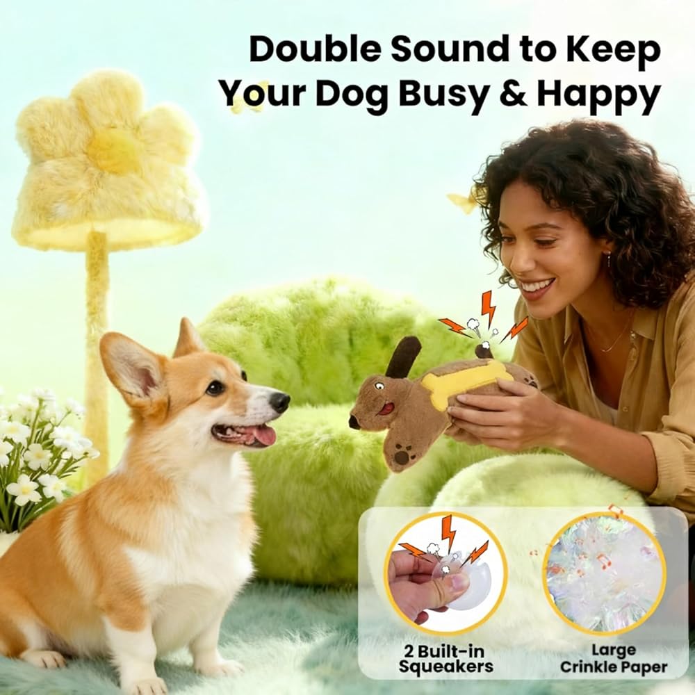 لعبة الكلب القطيفة التي تصدر صوت صرير من اتش جي بي - ألعاب الجرو الألماني المجعد للسلالات الصغيرة والمتوسطة والكبيرة، لعبة الحيوانات الأليفة المحشوة التفاعلية للتسنين وجلب المضغ لإبقائهم مشغولين وتخفيف القلق
