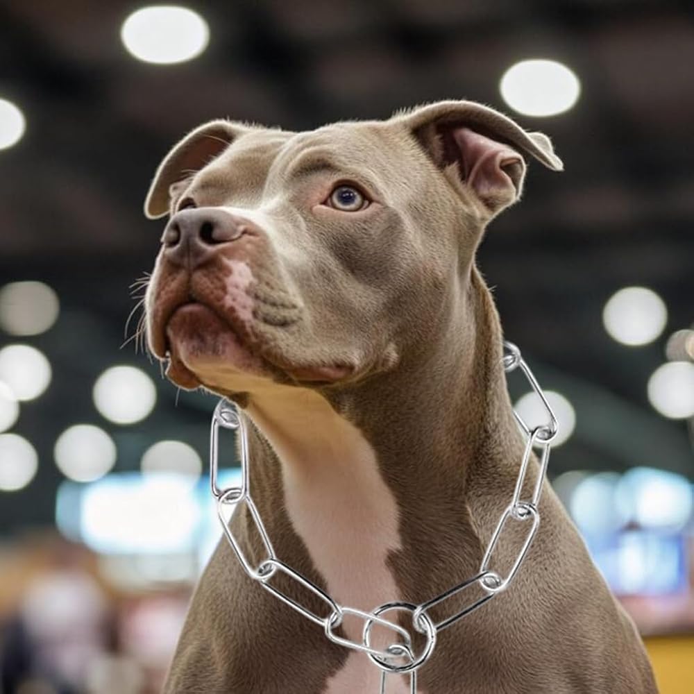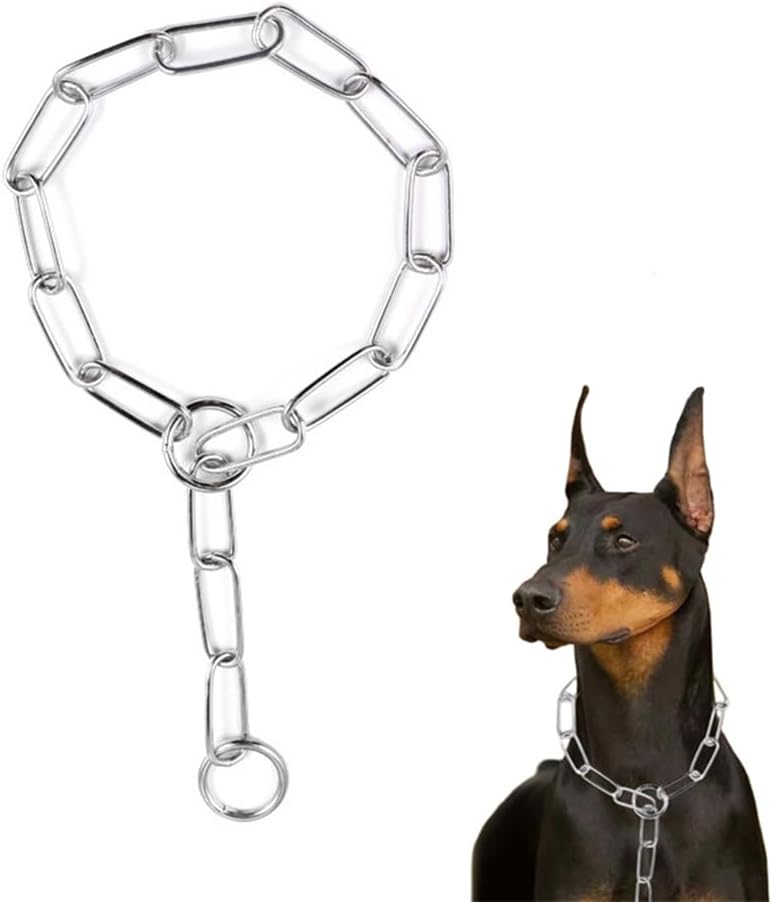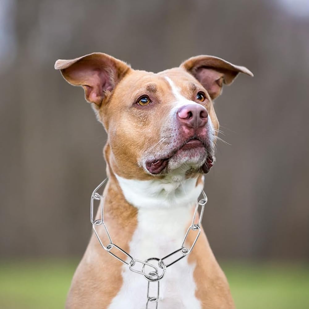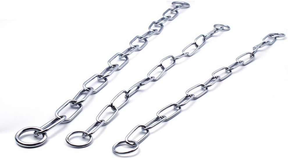 【Durable and Rust-free:】 The dog chain collar made of alloy steel and chrome plating, won't become rust and tarnish over time. Simultaneously it's sturdy enough to hold your do, yet light enough for his to pick up your cues for his behavior.