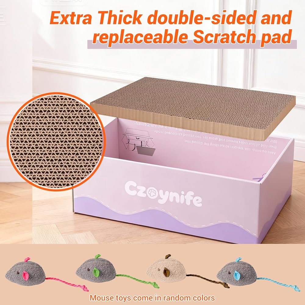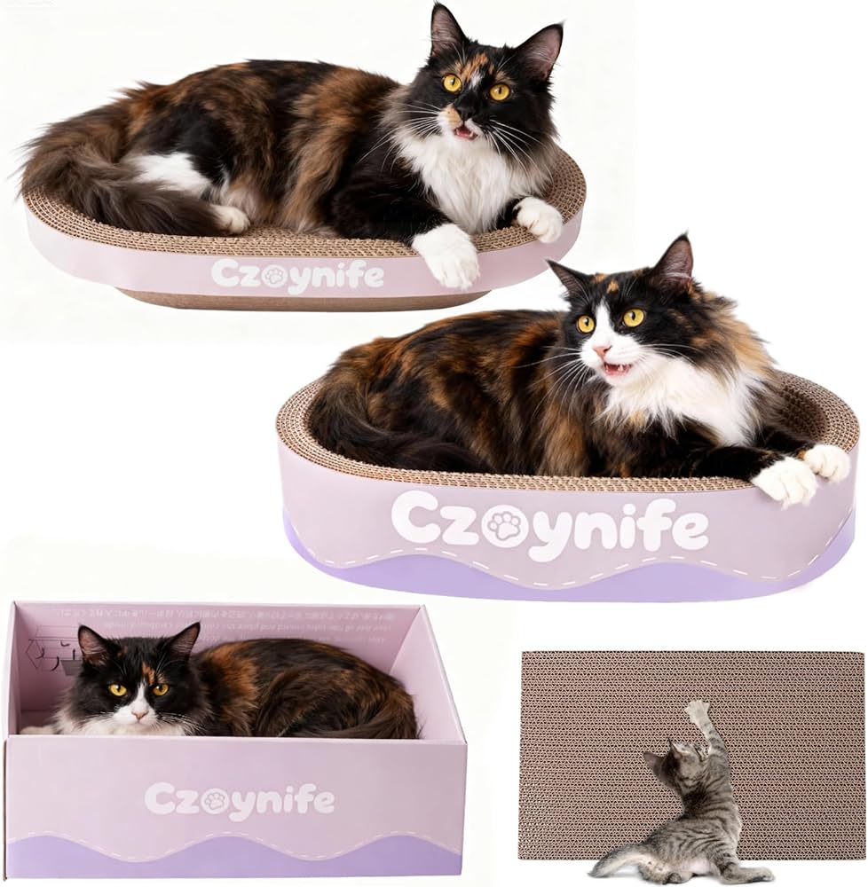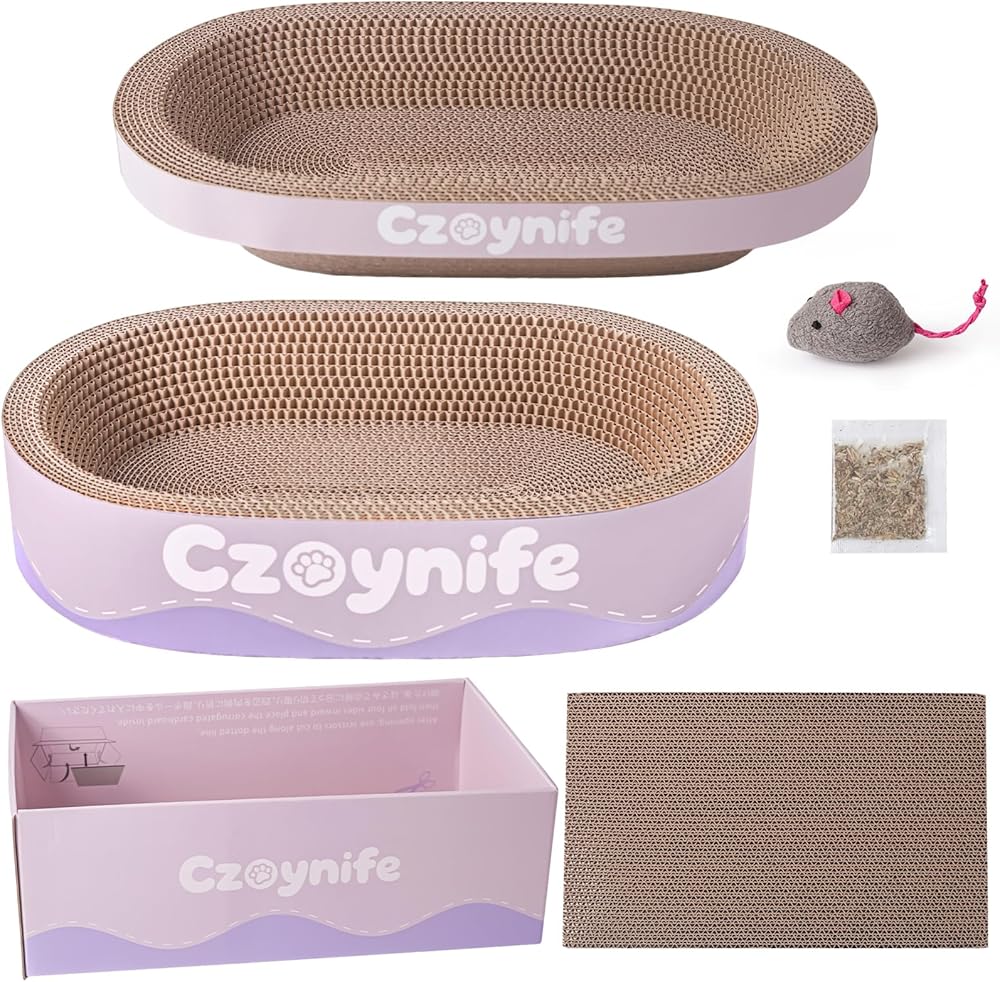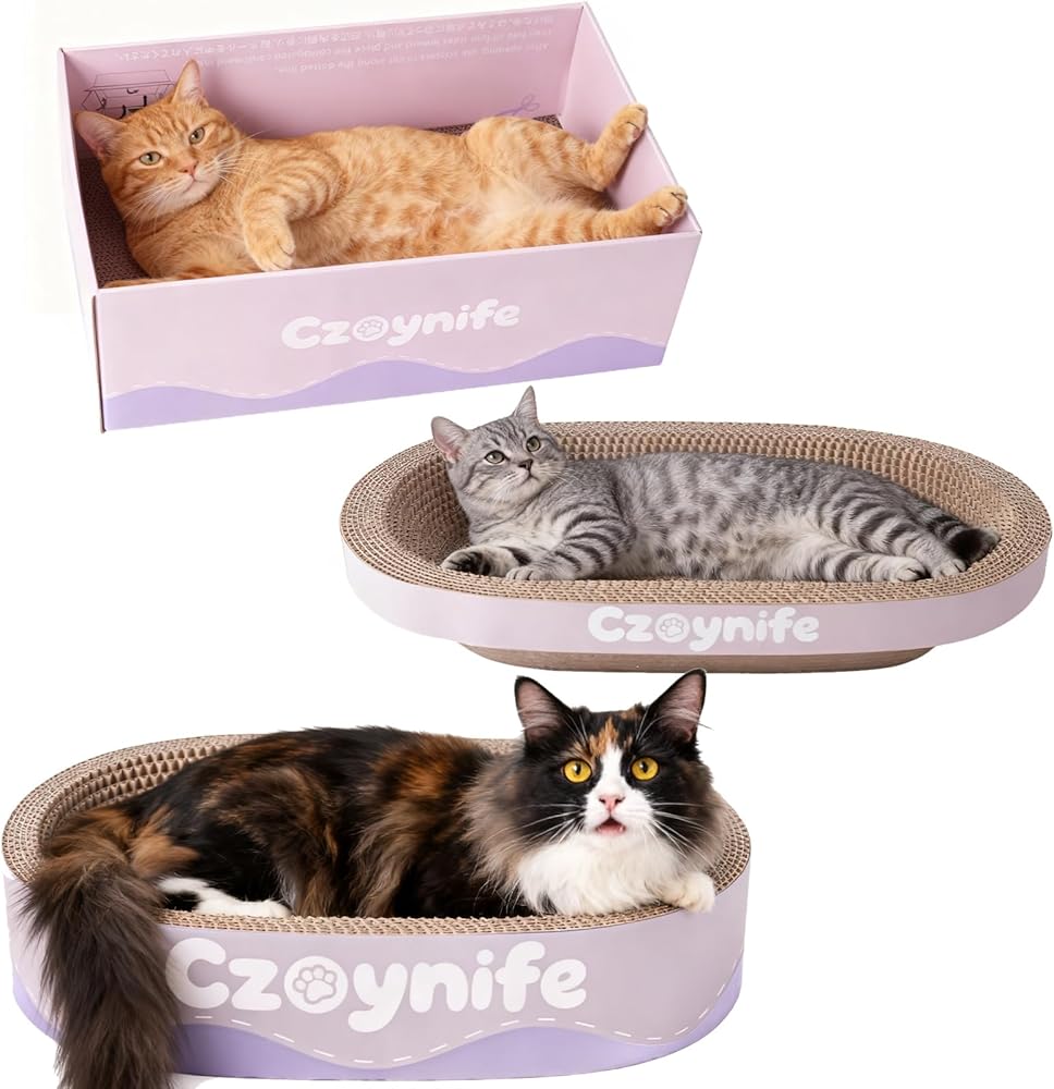 • 【PACKAGE】 Includes two 15.7-inch oval cat scratcher beds and one cardboard box scratcher, designed for kitten and medium-sized cats. Perfect for scratching, lounging, and playtime.It is kitty cat scratcher pad.