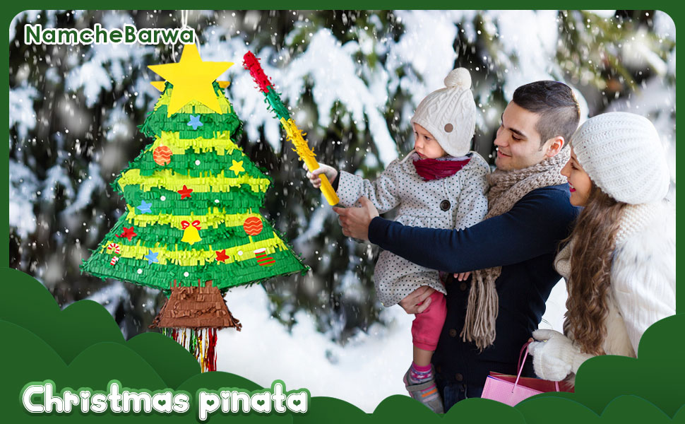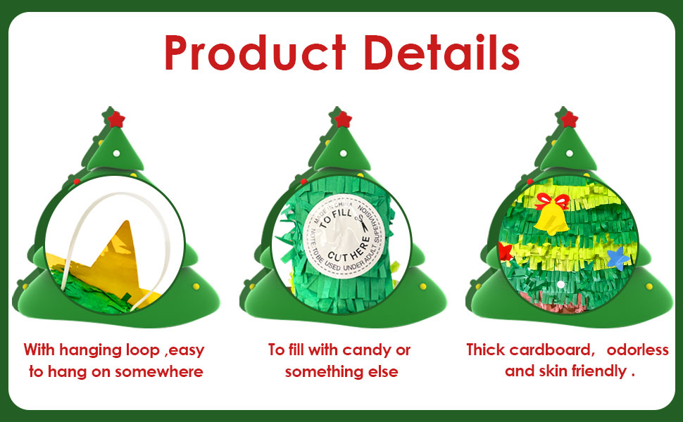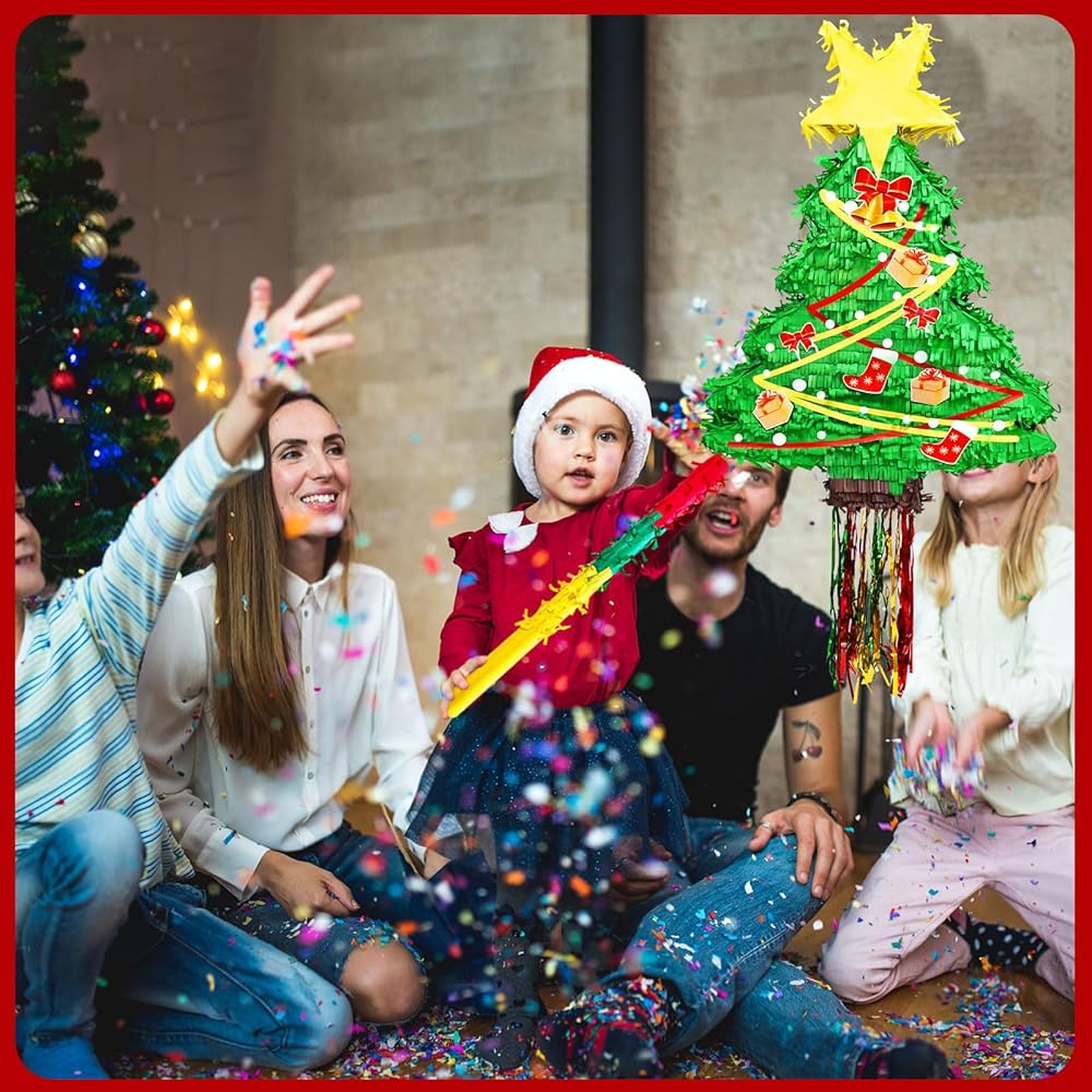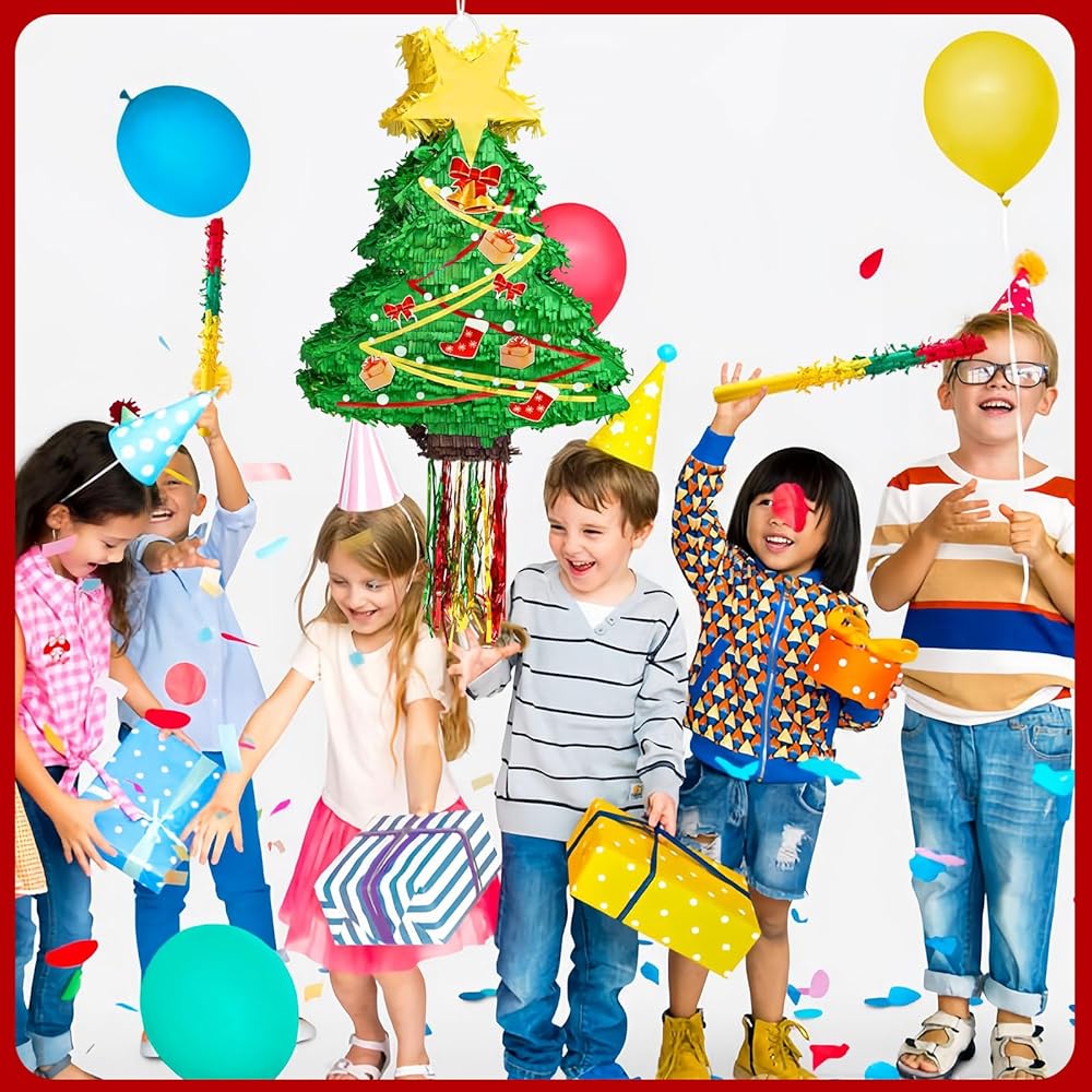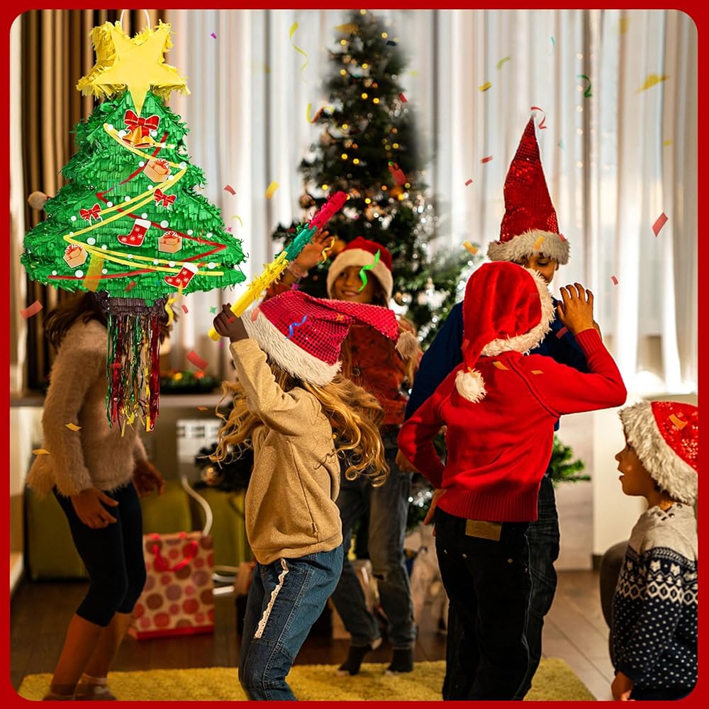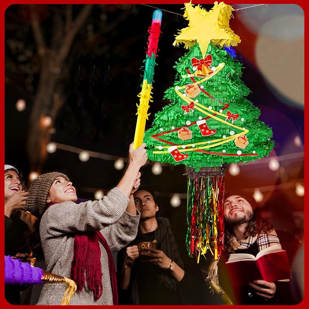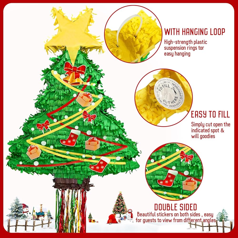 • تصميم فريد من نوعه لشجرة الكريسماس بيناتا: تبدو شجرة الكريسماس هذه جميلة جدًا ونابضة بالحياة؛ تستخدم كقطعة مركزية، أو ديكور للغرفة، أو دعامة لالتقاط الصور، أو لعبة حفلات كلاسيكية