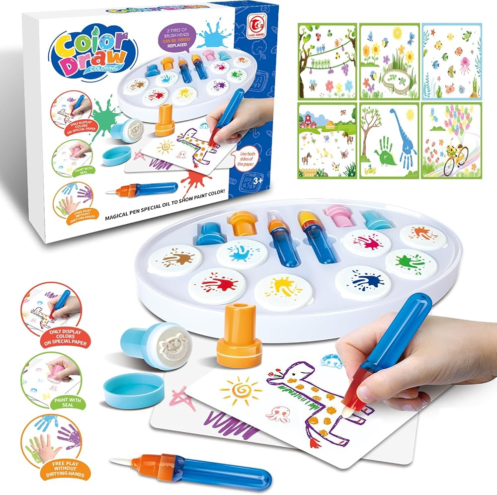 【Safe & Reusable】Non-toxic, harmless pigments certified for children's toy safety, suitable for kids ages 3 and up. This reusable art set makes an excellent introductory toy or holiday gift. Whether at home, on the go, or in early learning settings, it instantly transforms any moment into a fun learning experience.