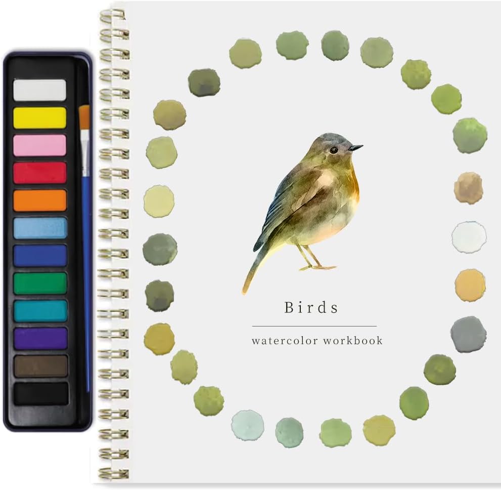 【All-in-One Kit】Includes 12 watercolors, quality brush, bleed-resistant thick-paper book, and a metal tin that doubles as a palette. All tools ready to use, no extra purchases needed.