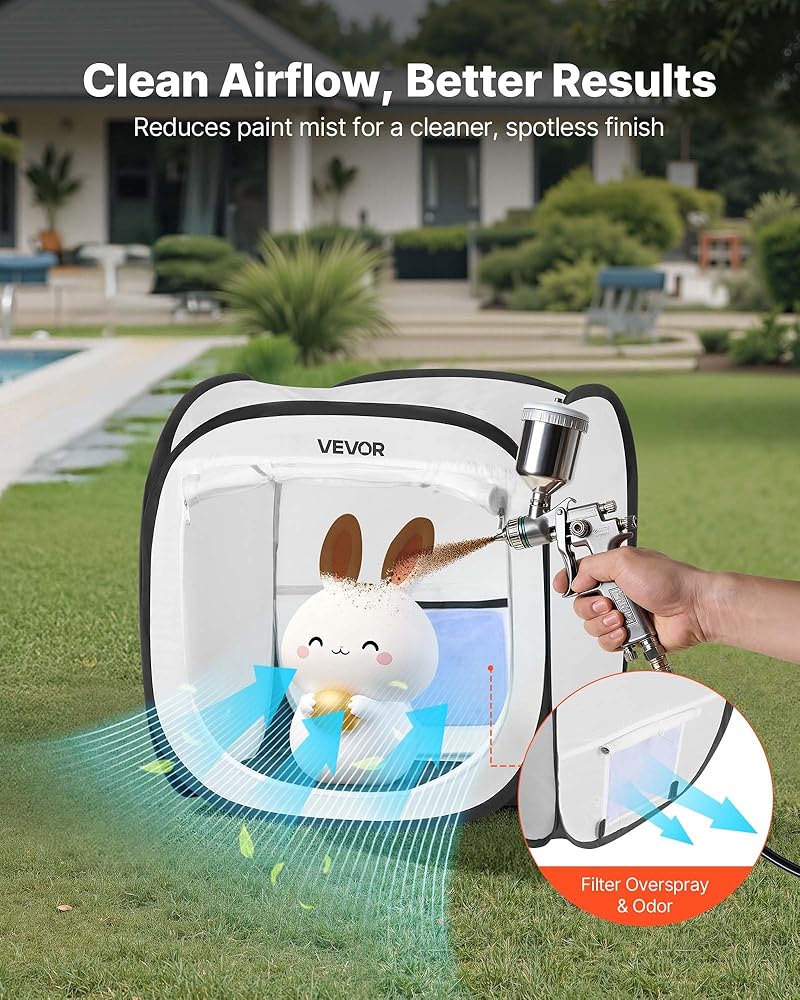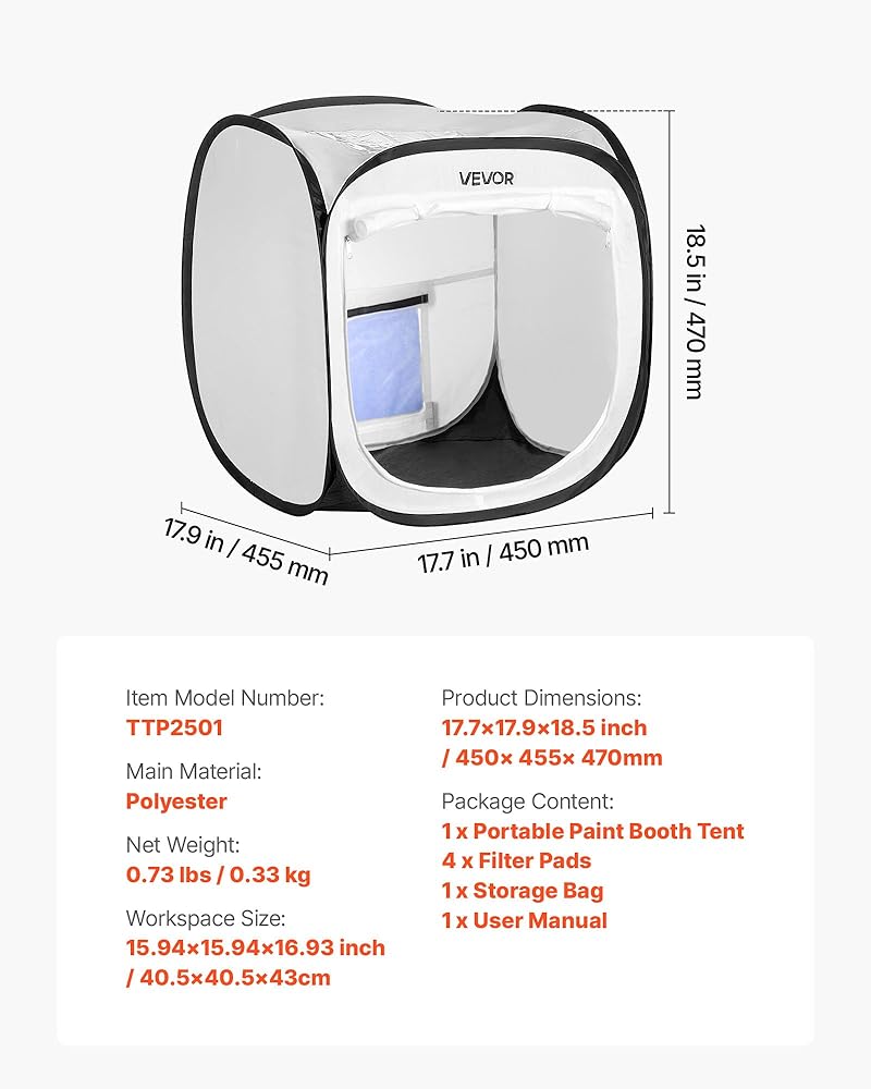 منطقة عمل واضحة: حافظ على مساحة الطلاء الخاصة بك مشرقة من خلال خيمة كشك الطلاء بالرش. تعمل كوة شفافة على تحسين الدقة بينما يساعد الباب الشبكي المزود بسحاب على منع الغبار والحطام، والحفاظ على مساحة عمل نظيفة وجافة للقيام بمهام الرش التفصيلية.