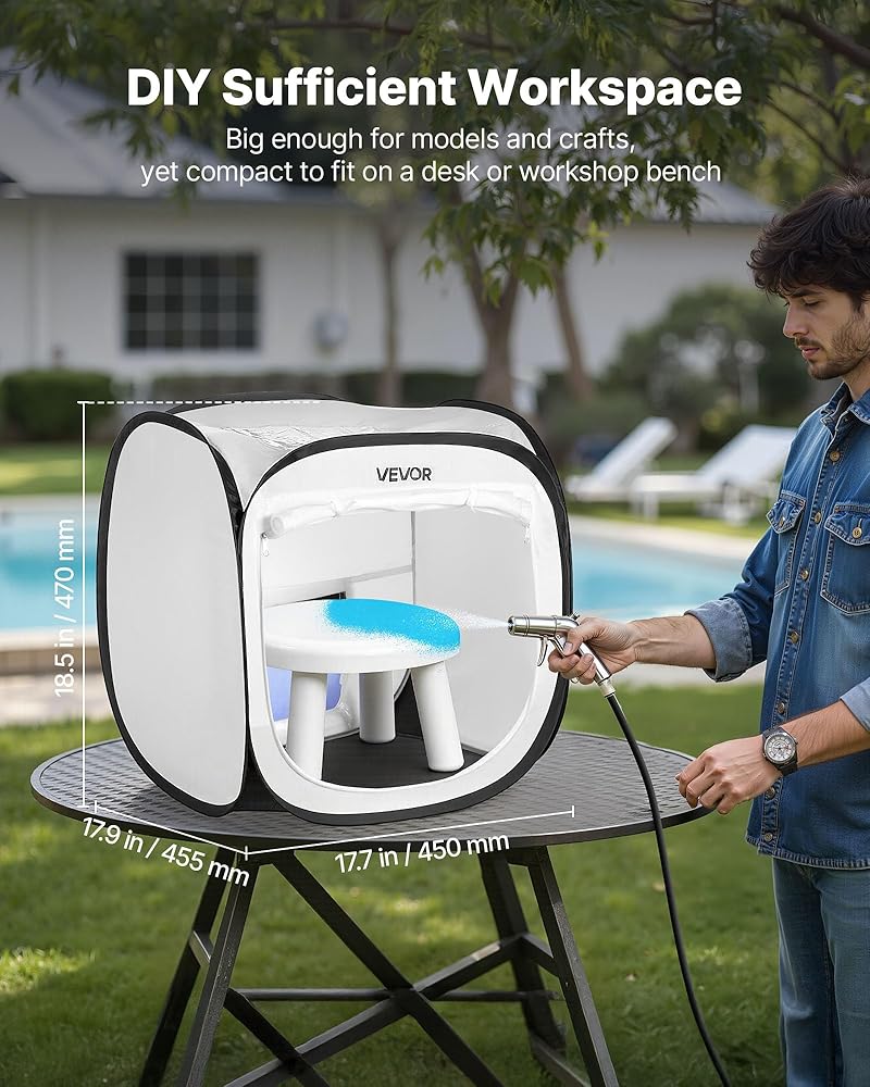 مساحة عمل مدمجة: تجمع خيمة كشك الطلاء المحمولة هذه بين مساحة العمل الواسعة والتصميم المدمج. متوفر بأحجام مختلفة، ويمكنه استيعاب النماذج والحرف اليدوية والأثاث الصغير مع تركيبه بشكل أنيق على الطاولات أو محطات العمل لسهولة الاستخدام والتخزين.