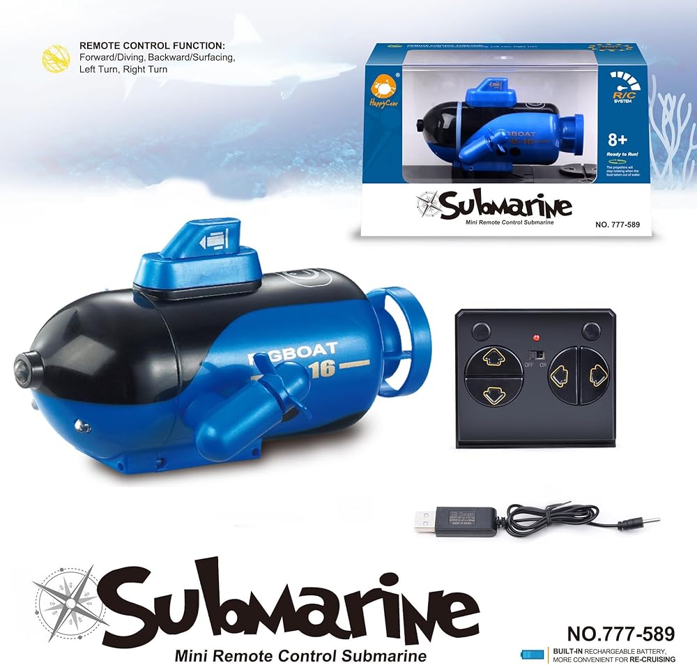PACKAGE CONTENTS: Includes submarine unit, remote controller, USB charging cable, antenna, and detailed instruction manual