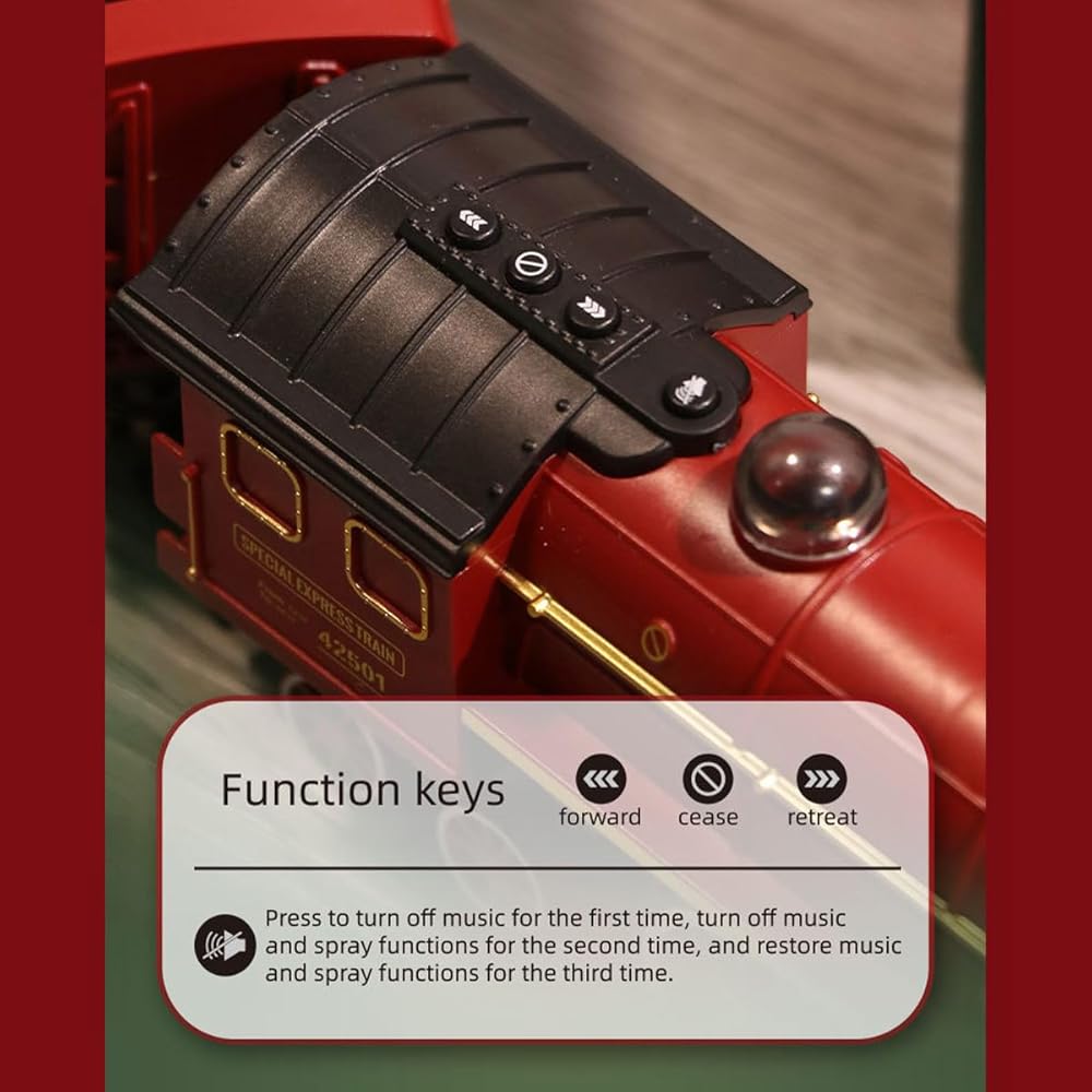 💨 Upgraded Steam, Lights & Realistic Sounds: Featuring triple smoke outlets (one chimney + two bottom vents), this RC train delivers enhanced smoke effects, paired with authentic train sounds and a working headlight. Every ride feels alive — a perfect blend of realism and festive magic that captures the spirit of a classic steam locomotive.