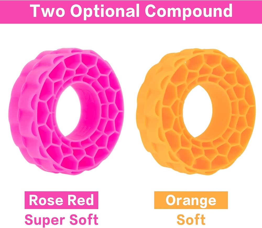 • مركبان اختياريان، اختر بين فائق النعومة (أحمر وردي) أو ناعم (برتقالي) لتخصيص التعامل مع زاحف RC الخاص بك حسب تفضيلاتك