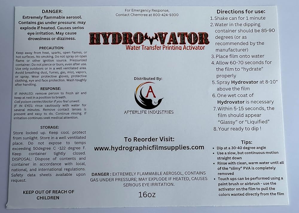 Hydrographic Film Activator, 16 oz Aerosol Spray Can. Used for Hydrographic Dipping.