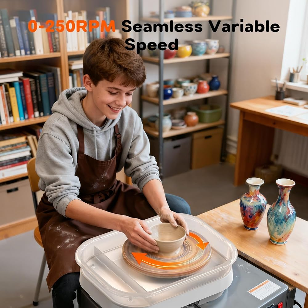 عجلة الفخار الكهربائية: استمتع بالتشغيل السلس والهادئ مع عجلة الطين الكهربائية القوية، المصممة للمبتدئين والأطفال. اضبط السرعة بسهولة باستخدام مقبض التحكم سهل الاستخدام، مما يوفر الدقة والمرونة في رحلتك الإبداعية.