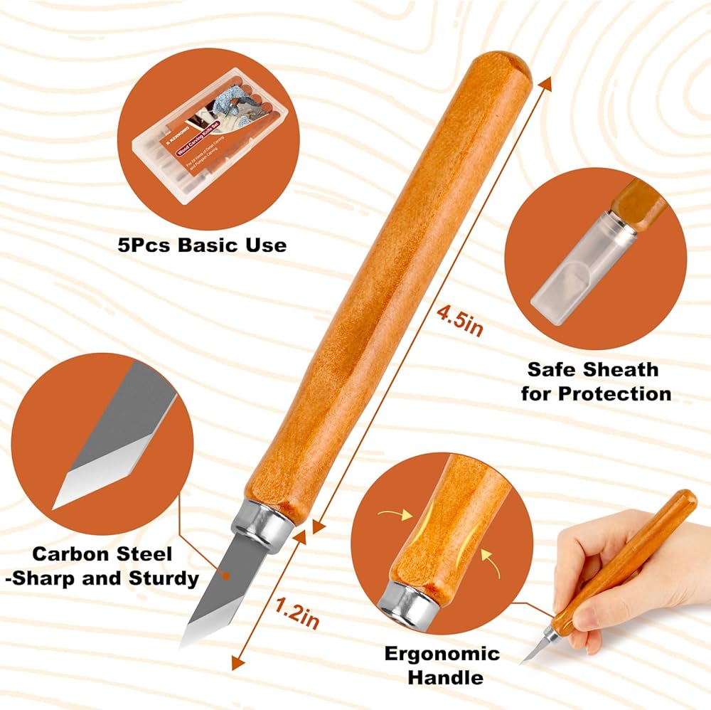 • [حادة ودقيقة] - أدوات النحت هذه مصنوعة من فولاذ كربوني عالي الجودة، مما يوفر القوة والمتانة. مثالية للنحت التفصيلي، مما يسمح بقطع سلس وخطوط نظيفة على مواد مختلفة، من الخشب إلى الصابون والمشمع.