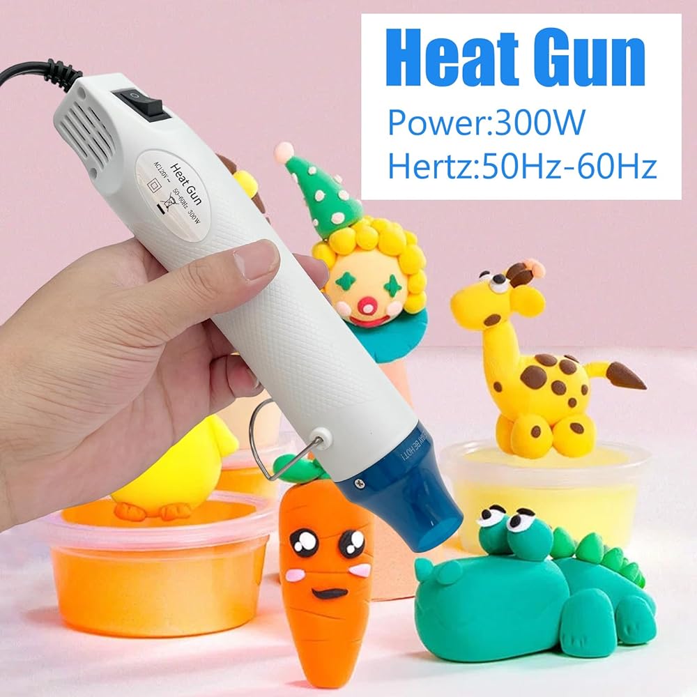 Versatile Usage: The mini heat gun can be used for heating shrinkable film, clay, embossed powder, rubber stamp, remove old painting, heat to shrink film, defrost and remove mud and dirt etc. Built-in stand for self-support and table top use.