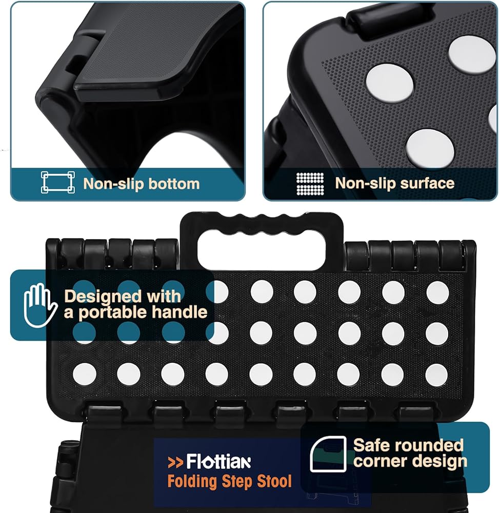 توفير المساحة وقابل للحمل - تهدف مقاعد الخطوات القابلة للطي إلى الحفاظ على المساحة بعد طيها. طبيعتها القابلة للطي تجعلها مضغوطة للغاية (بعرض 2 بوصة فقط). قم بتخزينه في أي مكان تقريبًا. يمكن طيه أو فتحه بحركة واحدة - وهو رائع عندما تكون يدك الأخرى ممتلئة. يمكن استخدام هذا المساعد العملي حتى من قبل أصغر أفراد عائلتك.