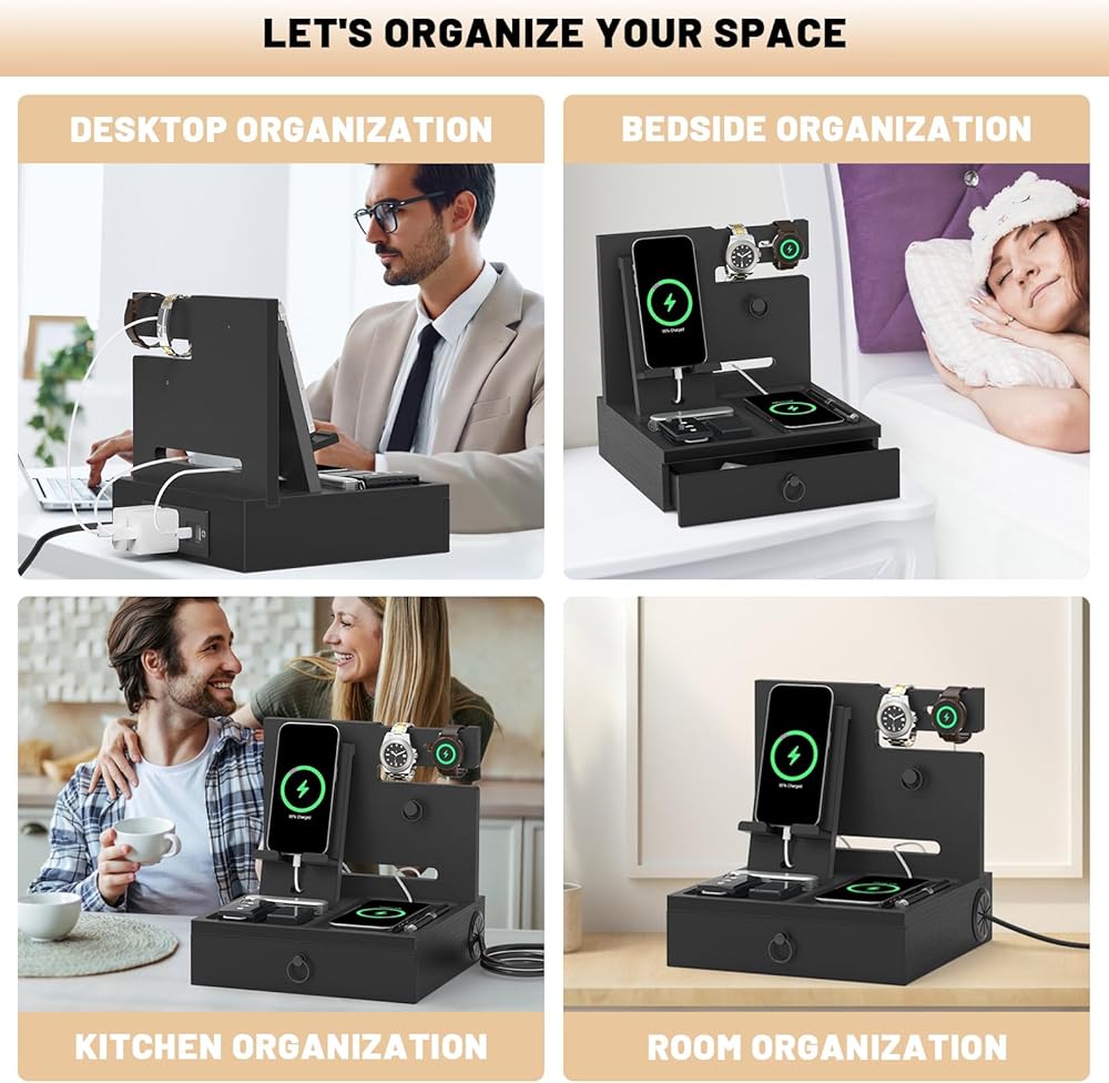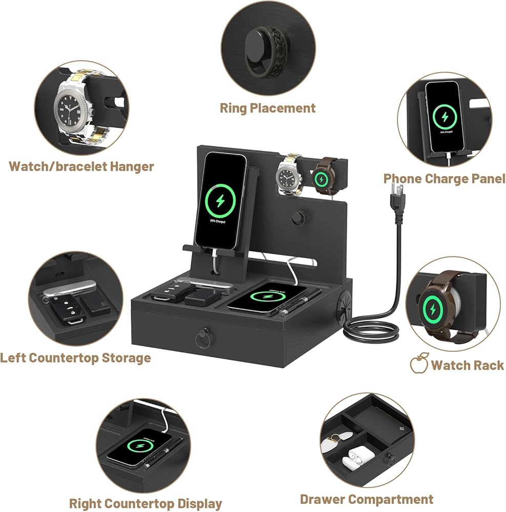 هدية مثالية للرجال: مواد عالية الجودة، محطة شحن متعددة الوظائف، مساحة تخزين واسعة، نمط الألوان الكلاسيكي يجعل منظم المنضدة يصبح هدية مدروسة للرجال، الزوج، الأب، الأخ، الصديق أو الأقارب في أعياد الميلاد، الذكرى السنوية، الكريسماس، رأس السنة، عيد الحب، عيد الأب، عيد الشكر والمزيد.