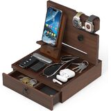 خشب حقيقي عالي الجودة: حامل المنضدة هذا مصنوع من مادة خشبية حقيقية فاخرة. براعة رائعة تضمن المتانة. بعد التلميع والتشطيب بعناية، اجعل قاعدة الشحن الخشبية هذه متينة وقوية، وهي حافظة لطيفة لمنزلك أو مكتبك.