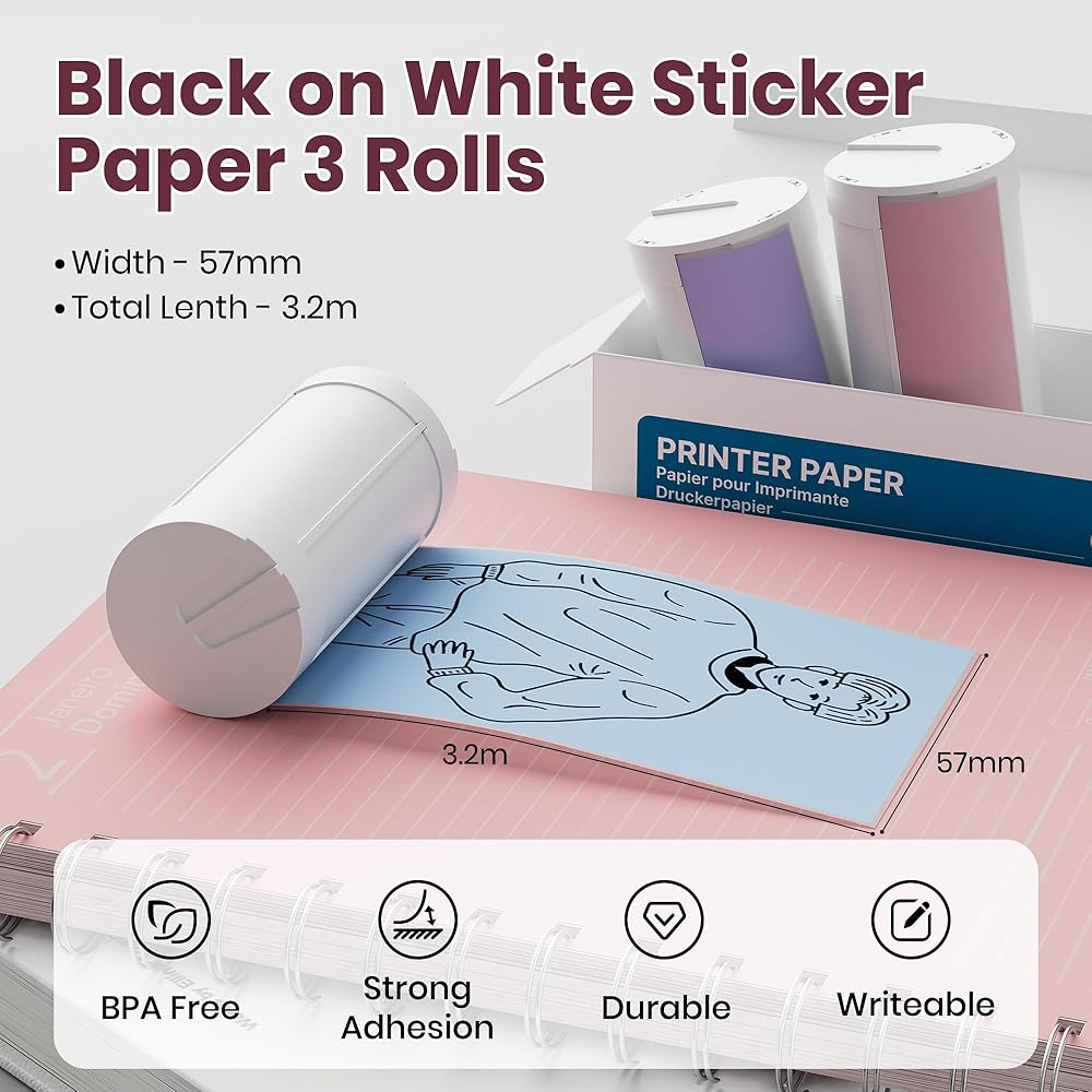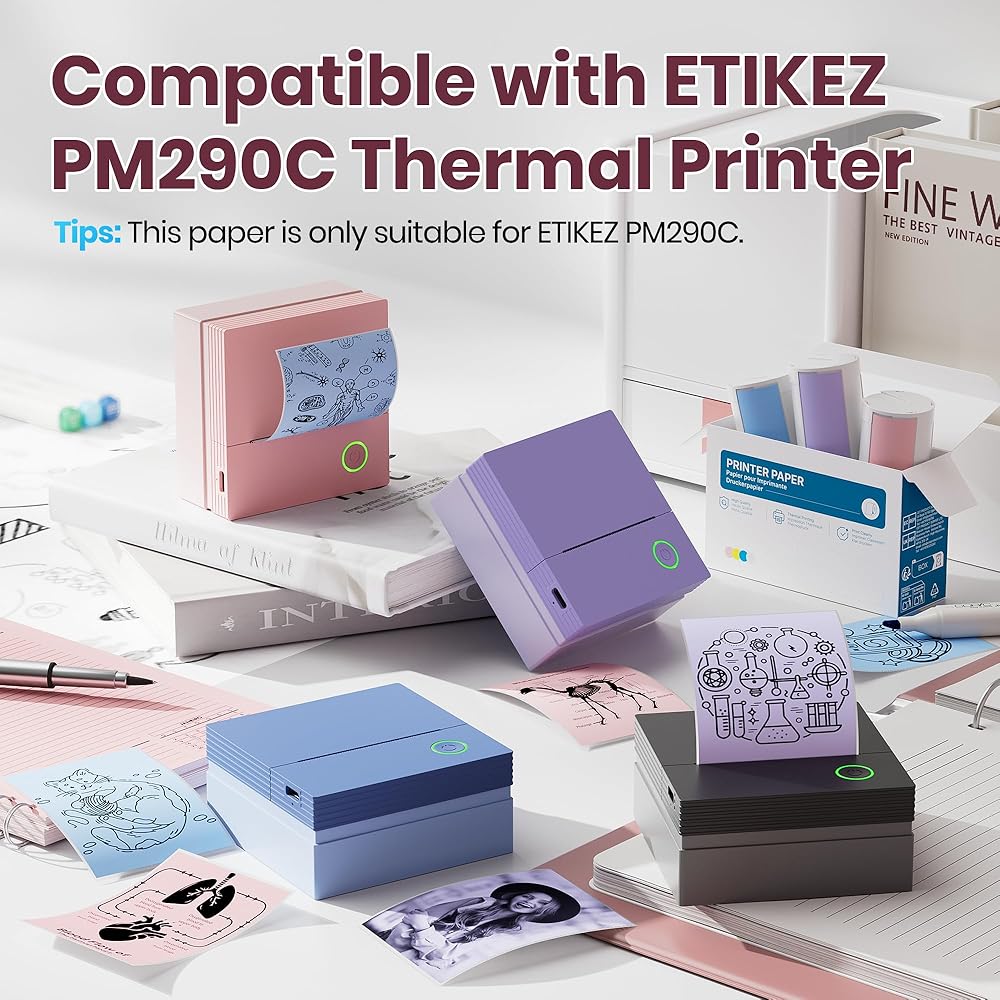 خالية من البيسفينول A وآمنة: ورق الملصقات الحراري ETIKEZ خالٍ من البيسفينول A، التصاق قوي ومقاوم للماء قليلاً. طباعة واضحة ولا تتلاشى لفترة طويلة. لا تقلق أبدًا من احتمال سقوط ملصقاتك، يمكنك طباعة الصورة كما تريد واستخدامها لتزيين الغرفة أو الأعمال اليدوية التي تصنعها بنفسك
