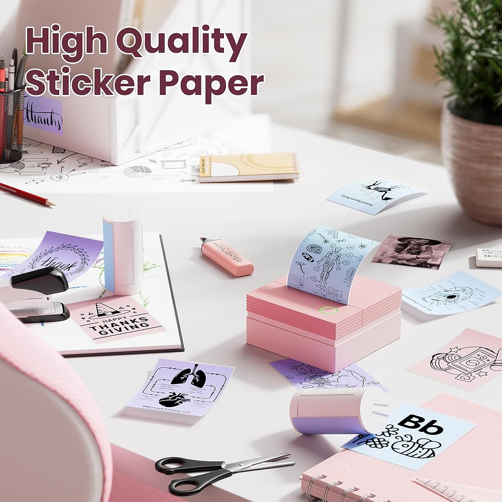 الاستخدام على نطاق واسع: استخدمه مع الطابعة الحرارية PM290C. يمكنك إنهاء أعمالك الإبداعية وخطة العمل والمذكرة وملاحظات الاجتماع وملاحظات الدراسة وقائمة التسوق من خلال تطبيق Labelnize. رائعة لمذكرات الخطة وقائمة "المهام التي يجب القيام بها" ومواد بطاقات الهدايا وتزيين الغرفة وأي شيء آخر ترغب في طباعته. جلب المتعة لعملك وحياتك!