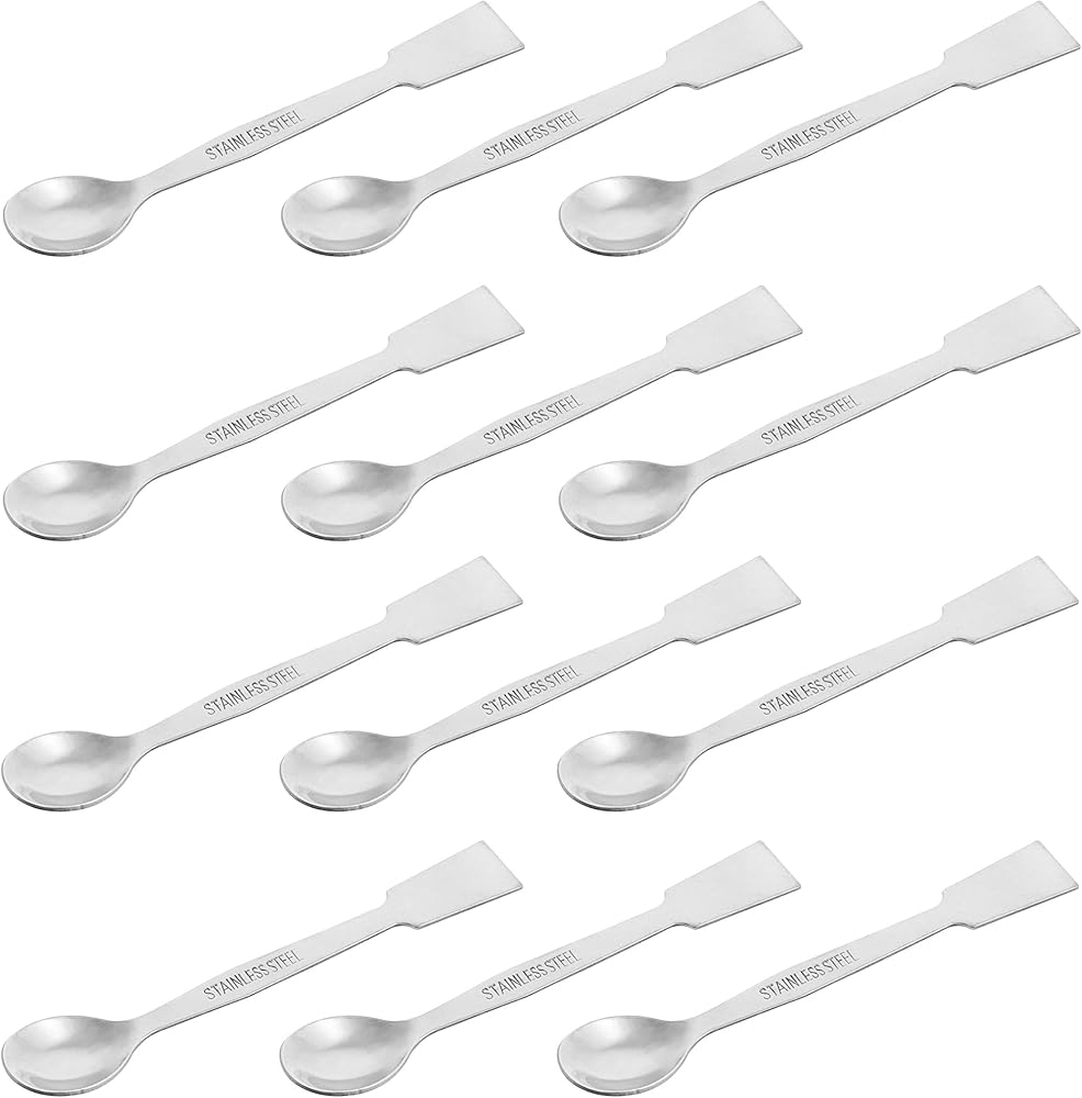 ستانلس ستيل || عبوة من 12 ملعقة مختبرية بأطراف ملعقة. مصنوع من الفولاذ المقاوم للصدأ المتين وعالي الجودة