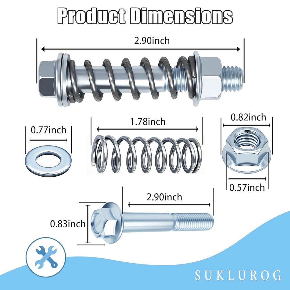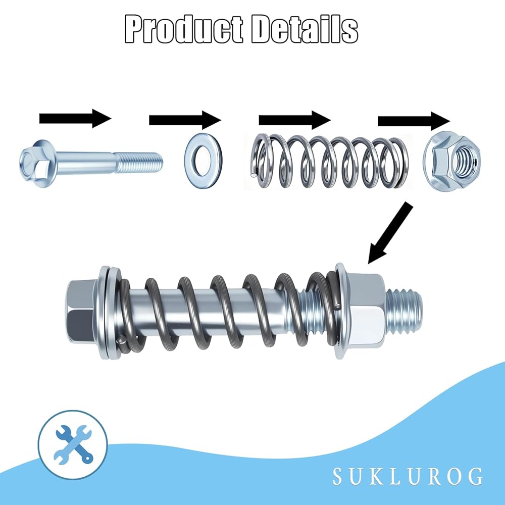【Package & Installation】: Our car bolt contains a total of springs*2, screw*2, nut*2, washer*2, this kit comes with complete accessories, when you receive our car bolt, you can easily complete the installation. Whether you are replacing your old system parts or performing routine maintenance, this kit will meet your needs.