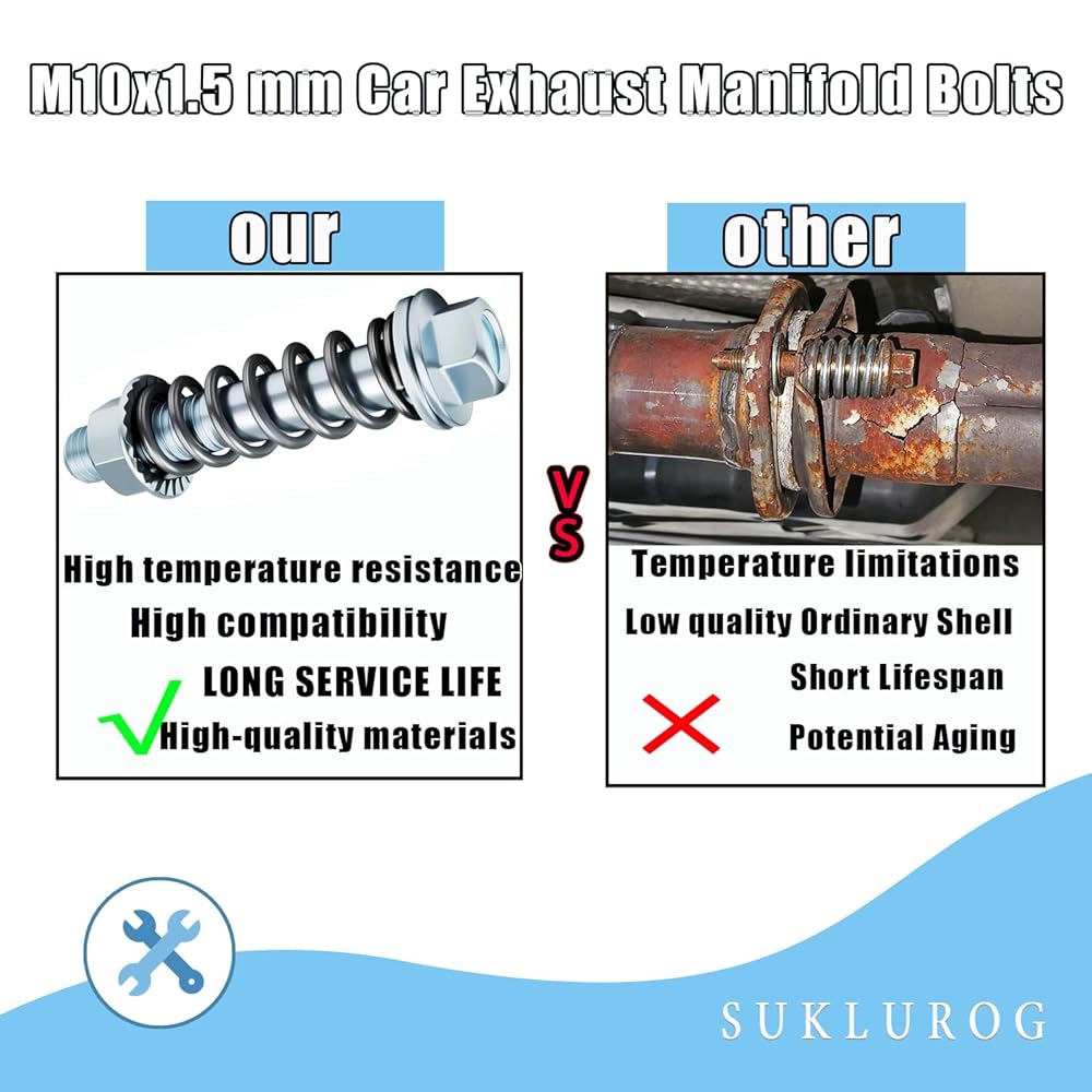 【High-Quality Materials】: Exhaust manifold bolts are made of high-quality steel, which is resistant to high temperatures, strong and durable. Even under harsh conditions, it can maintain its original performance and run more stably, efficiently and safely.