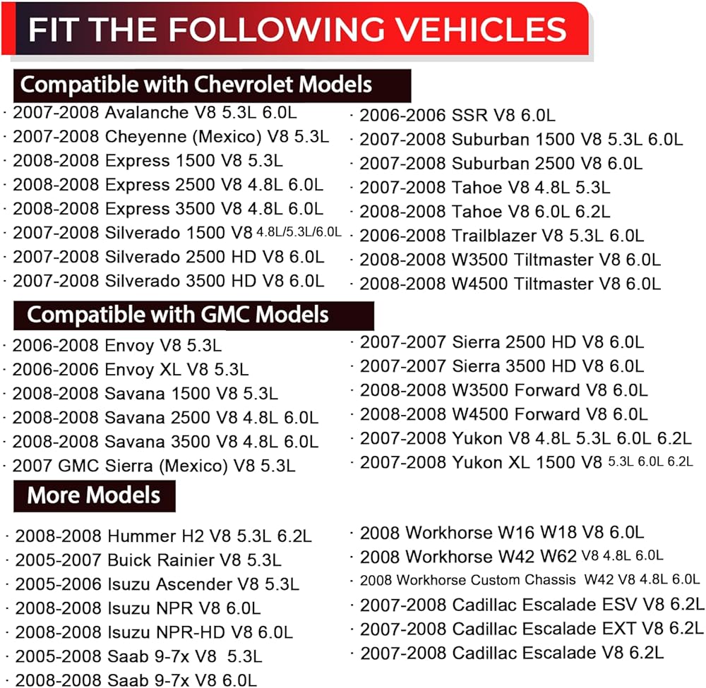 [Vehicle Fitment] Compatible with Chevy Avalanche Cheyenne Tahoe 2007-2008, Express 1500 2500 3500 2008, Silverado 1500 2500HD 3500HD 2007-2008, SSR 2006, Suburban 1500 2500 2007-2008, Trailblazer 2006-2008; Compatible with Cadillac Escalade ESV EXT 2007-2008; Compatible with Hummer H2 2008; Compatible with Buick Rainier 2005-2007; Compatible with Isuzu Ascender 2005-2006, NPR HD 2008; Compatible with Saab 9-7x 2005-2008