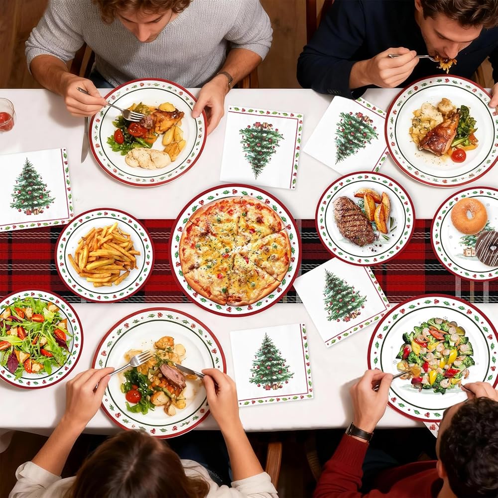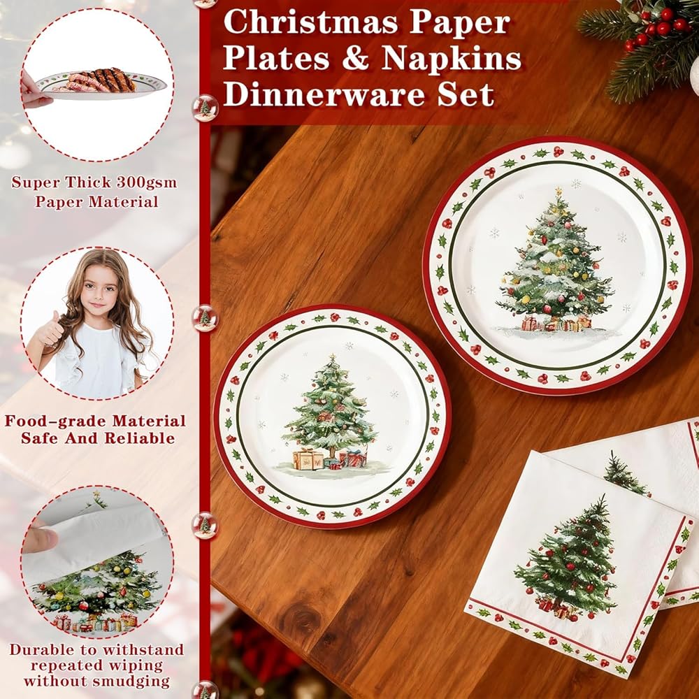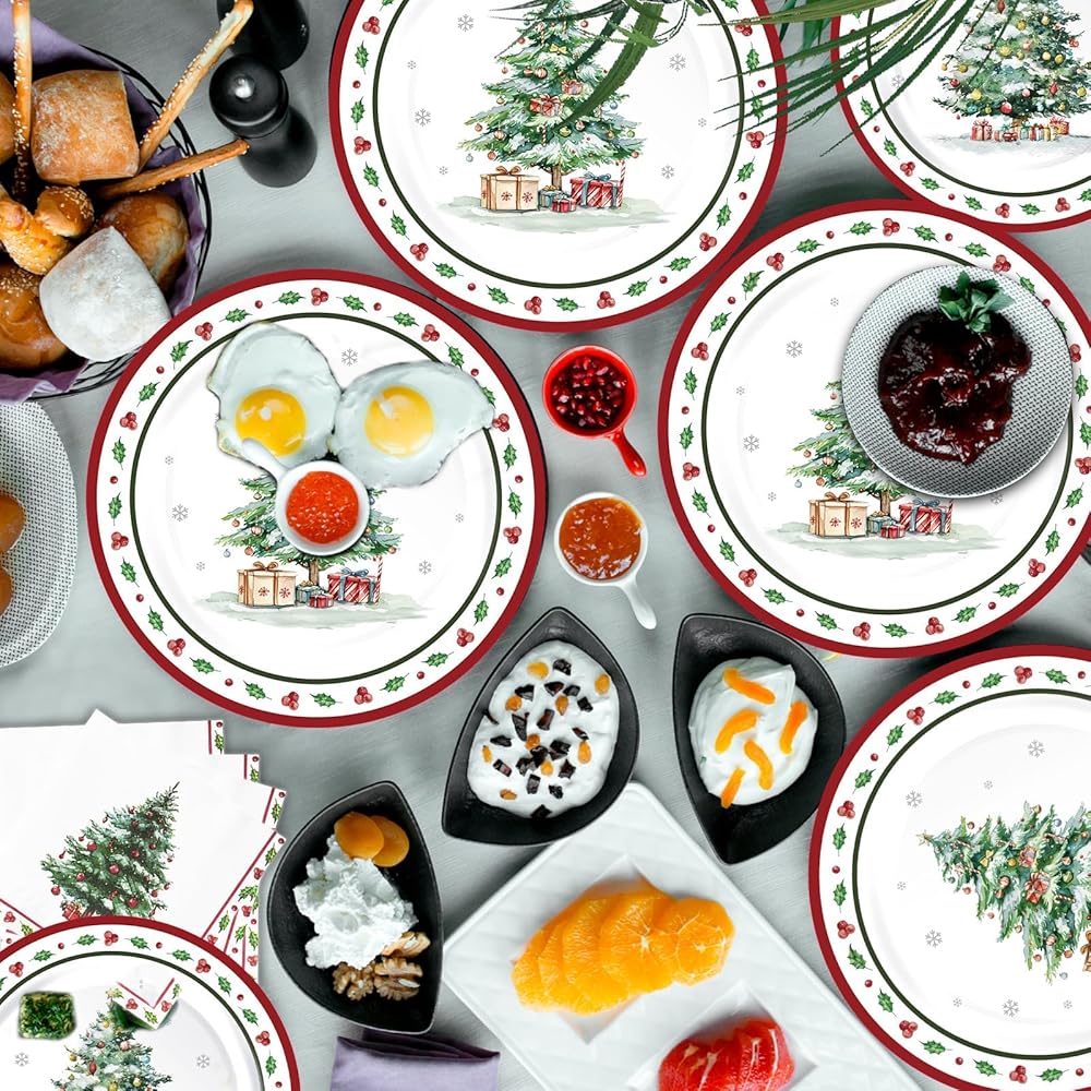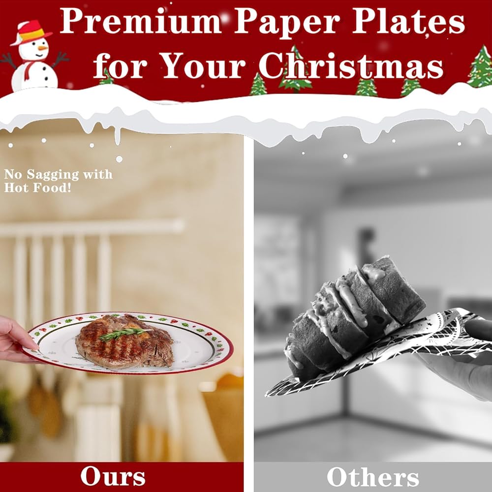 Wide Applications: These Christmas plates dinnerware disposable are perfect for large dinner parties, such as holiday party, wedding party, gathering party, Christmas birthday party, Christmas party supplies, and more celebrations. Simply create an unforgettable and enjoyable experience for your party