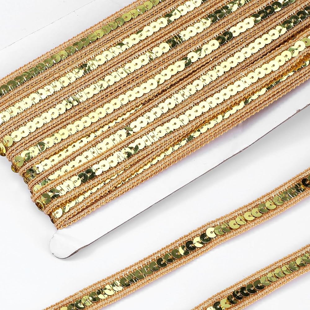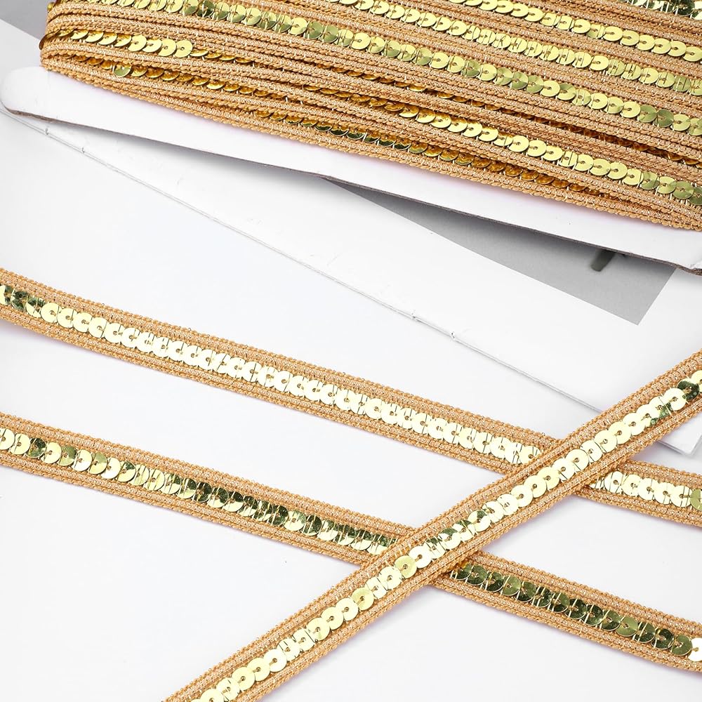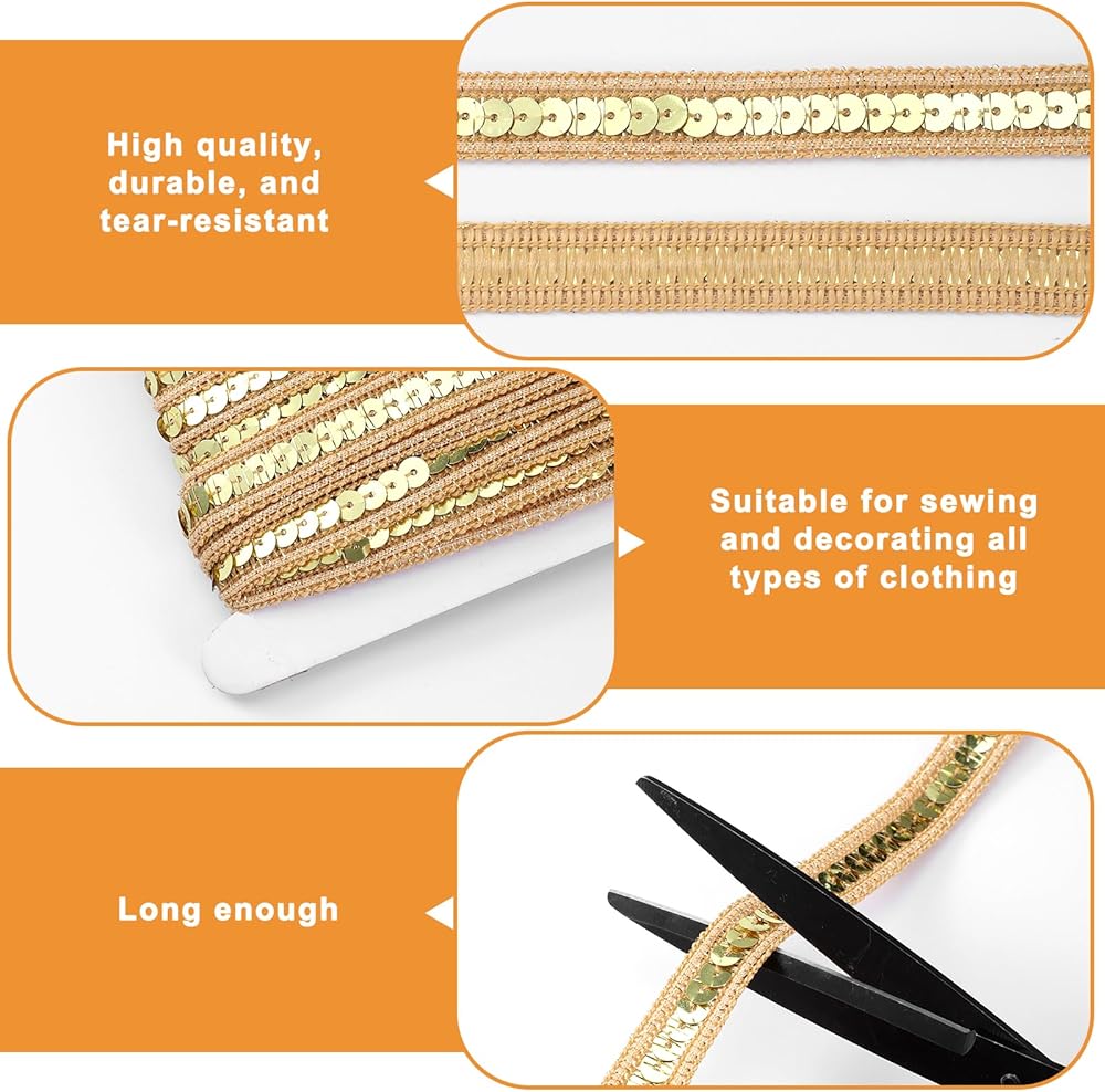 • 【High-Quality Material】Crafted from durable plastic, this gold trim for sewing is designed to withstand wear and tear. The sequins are securely attached, ensuring they remain vibrant and glossy, even with frequent use. Ideal for long-lasting projects.