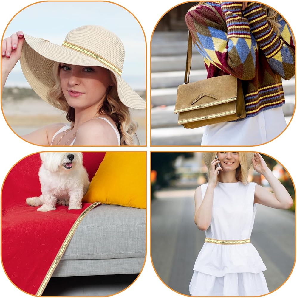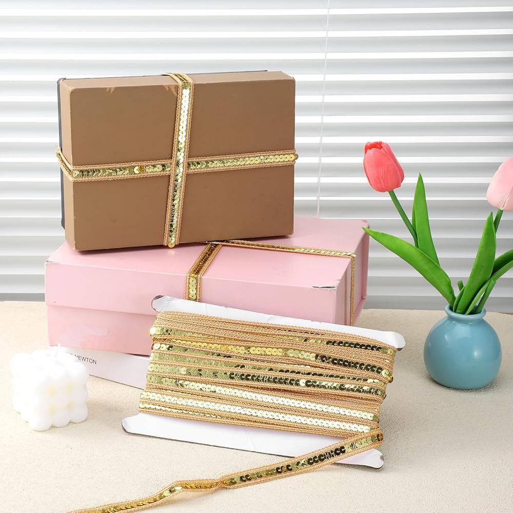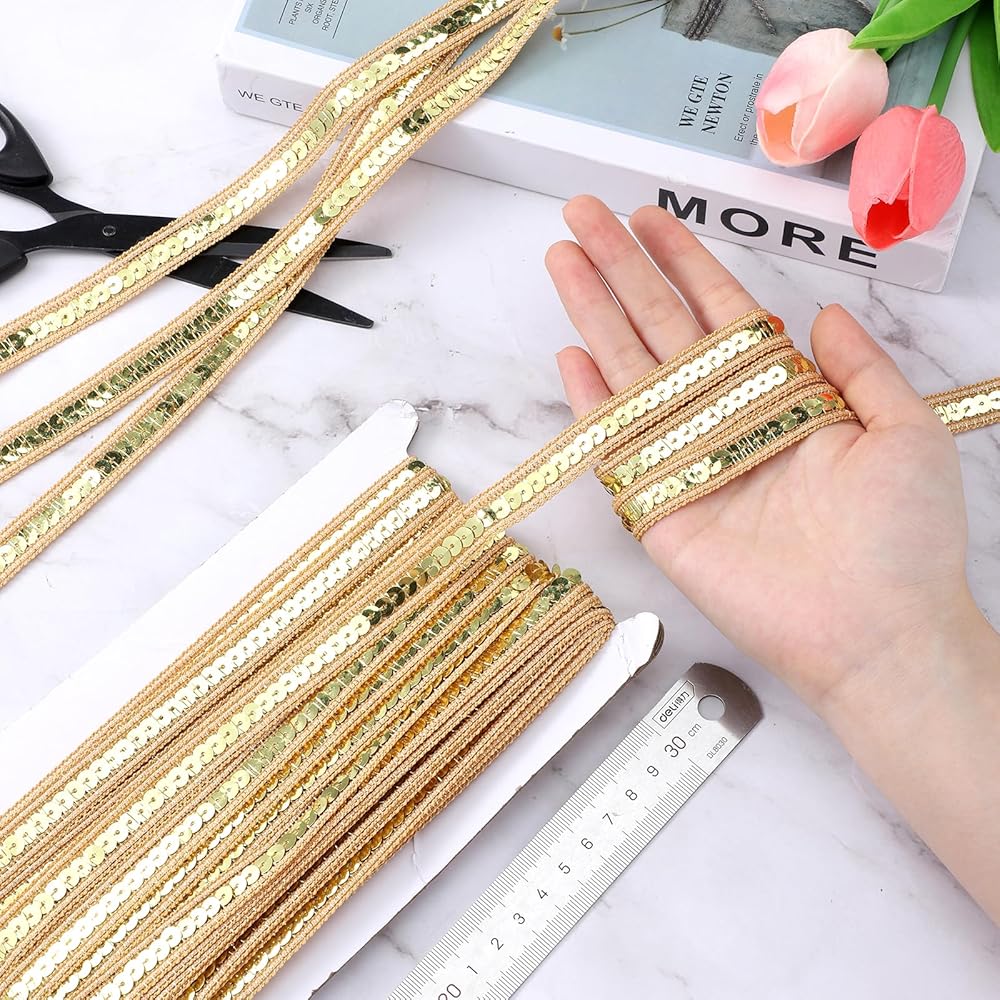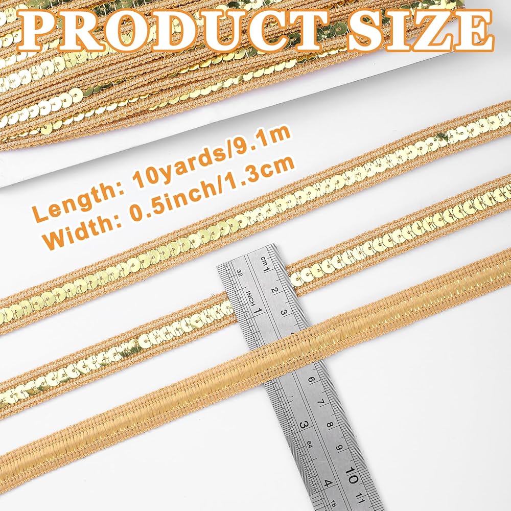 • 【Versatile Use】This Gold Sequin Ribbon Trim is perfect for a variety of crafting and sewing projects. Whether you're embellishing dresses, creating hair accessories, or decorating for events, the glittery finish adds a touch of elegance and sparkle to any project.