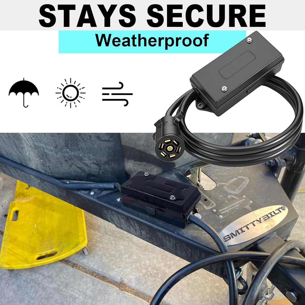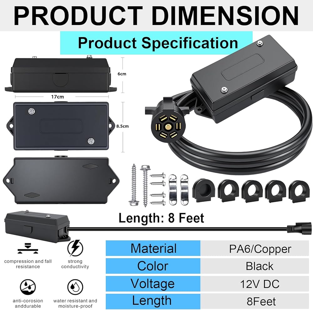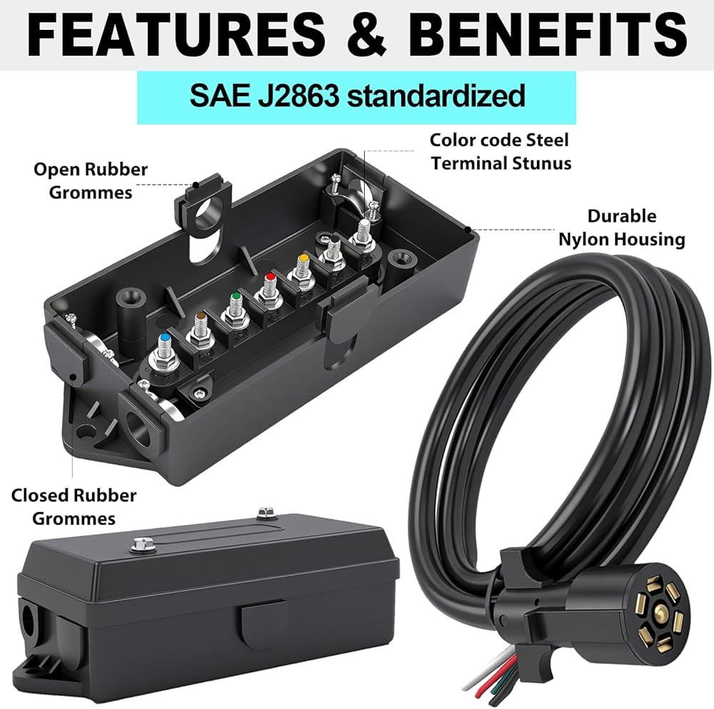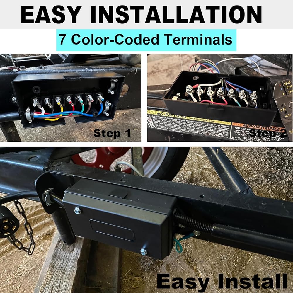 • ✔️تبسيط وتقوية: تحسين أسلاك المقطورة من أجل الموثوقية: مزود بـ 7 مسامير طرفية، يوفر صندوق توصيل المقطورة ذو 7 دبابيس تركيبات أسلاك آمنة ومأمونة. تجعل العلامات الواضحة الموجودة على الصندوق تحديد التوصيلات أمرًا سهلاً، وتبسيط الإعداد وتقليل الأخطاء - لذلك يظل النظام الكهربائي للمقطورة قويًا وسهل الصيانة.