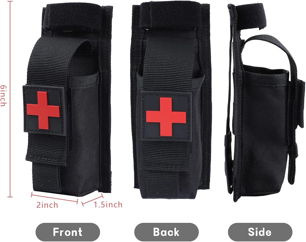 MOLLE system - The molle tourniquet holder features a versatile design with back MOLLE straps that allow you to attach the it to your battle belt, military vest, backpack, waist pack and various other tactical gear items