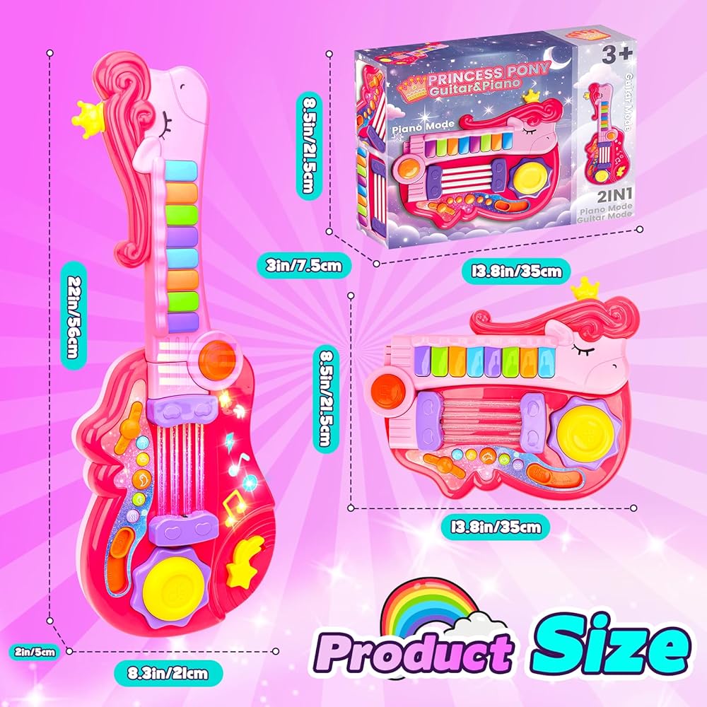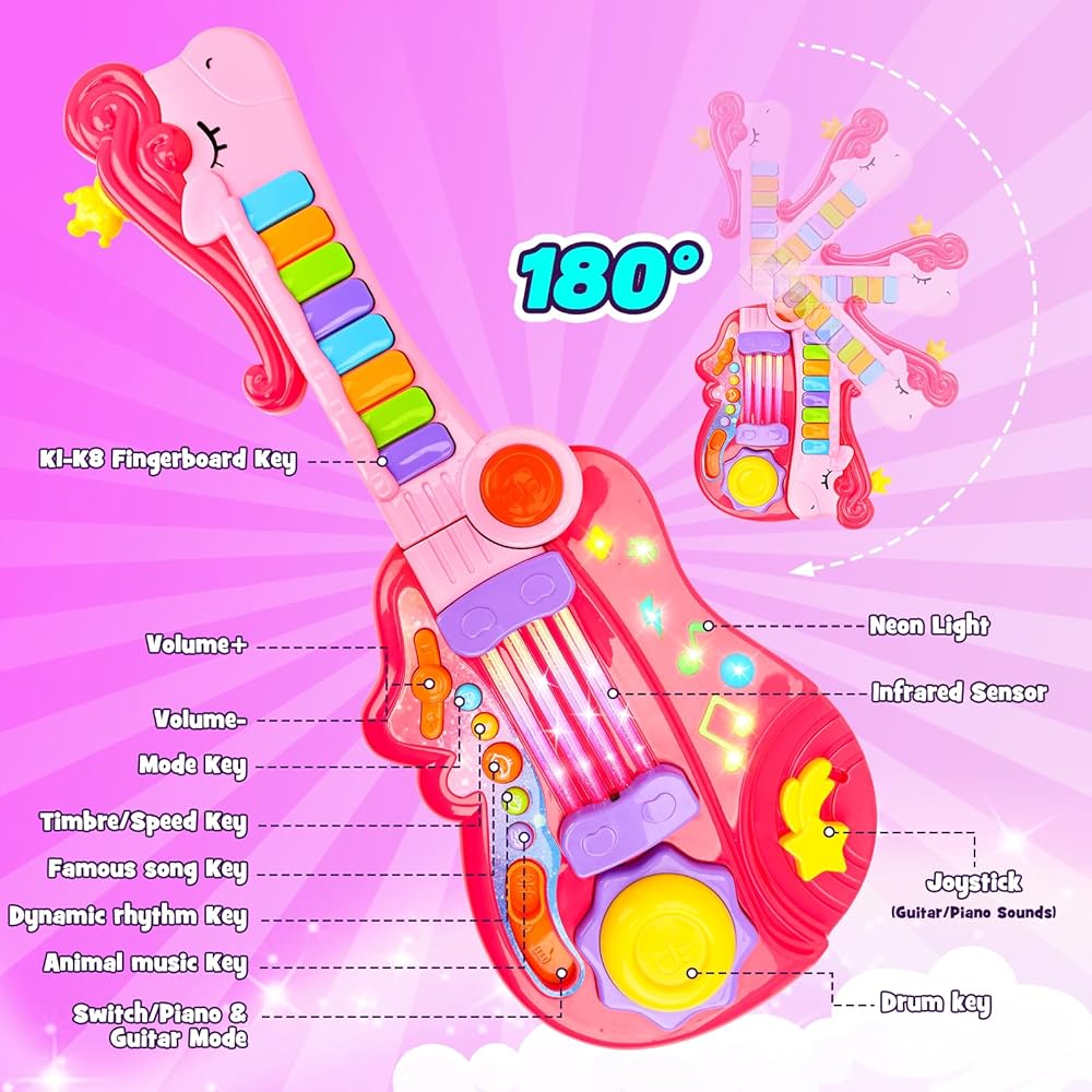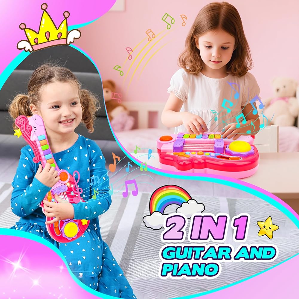 لعبة جيتار للأطفال هدية لفتاة تبلغ من العمر 3 سنوات جيتار كهربائي 2 في 1 مع وضع البيانو للأطفال الصغار تضيء ألعاب الموسيقى لهدايا الأولاد والبنات من عمر 3 و4 و5 سنوات